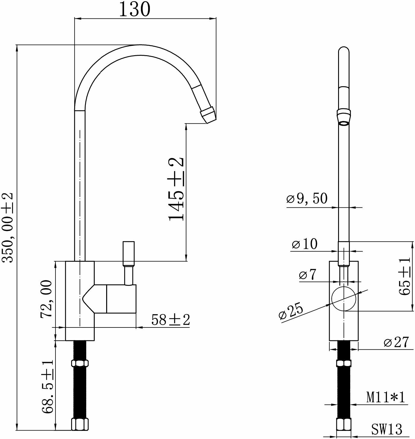 Кран комбинированный (смеситель + питьевая) atoll NKD0212BB-L черный глянец (Bright Black) Atoll