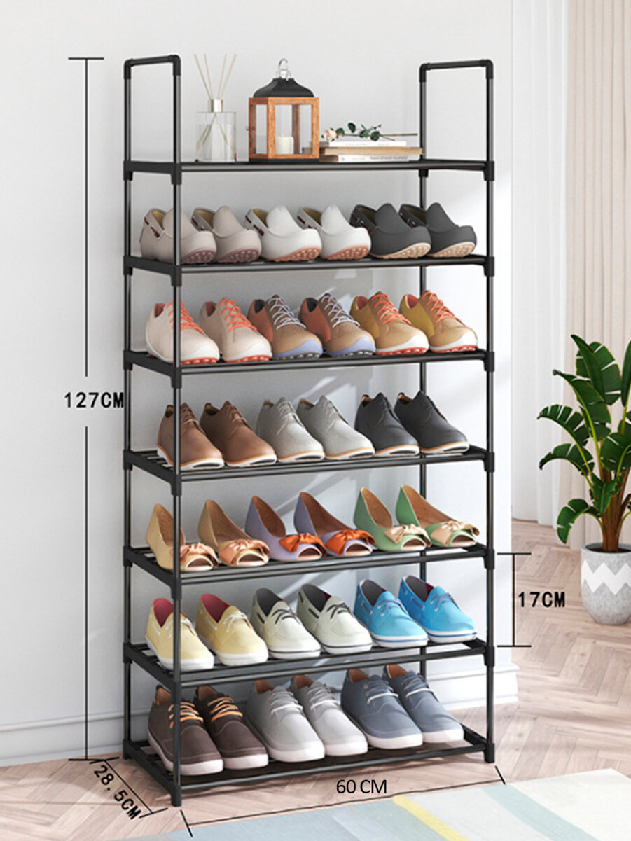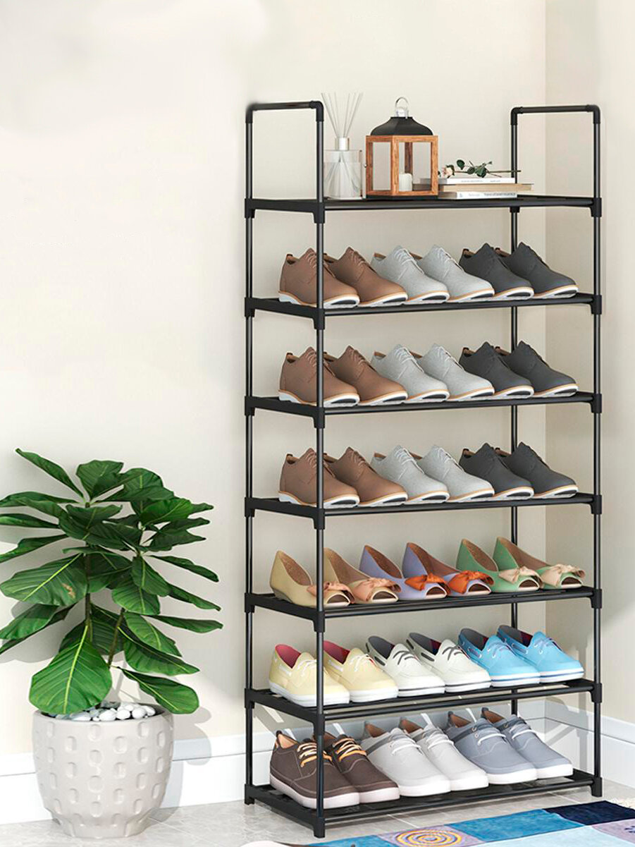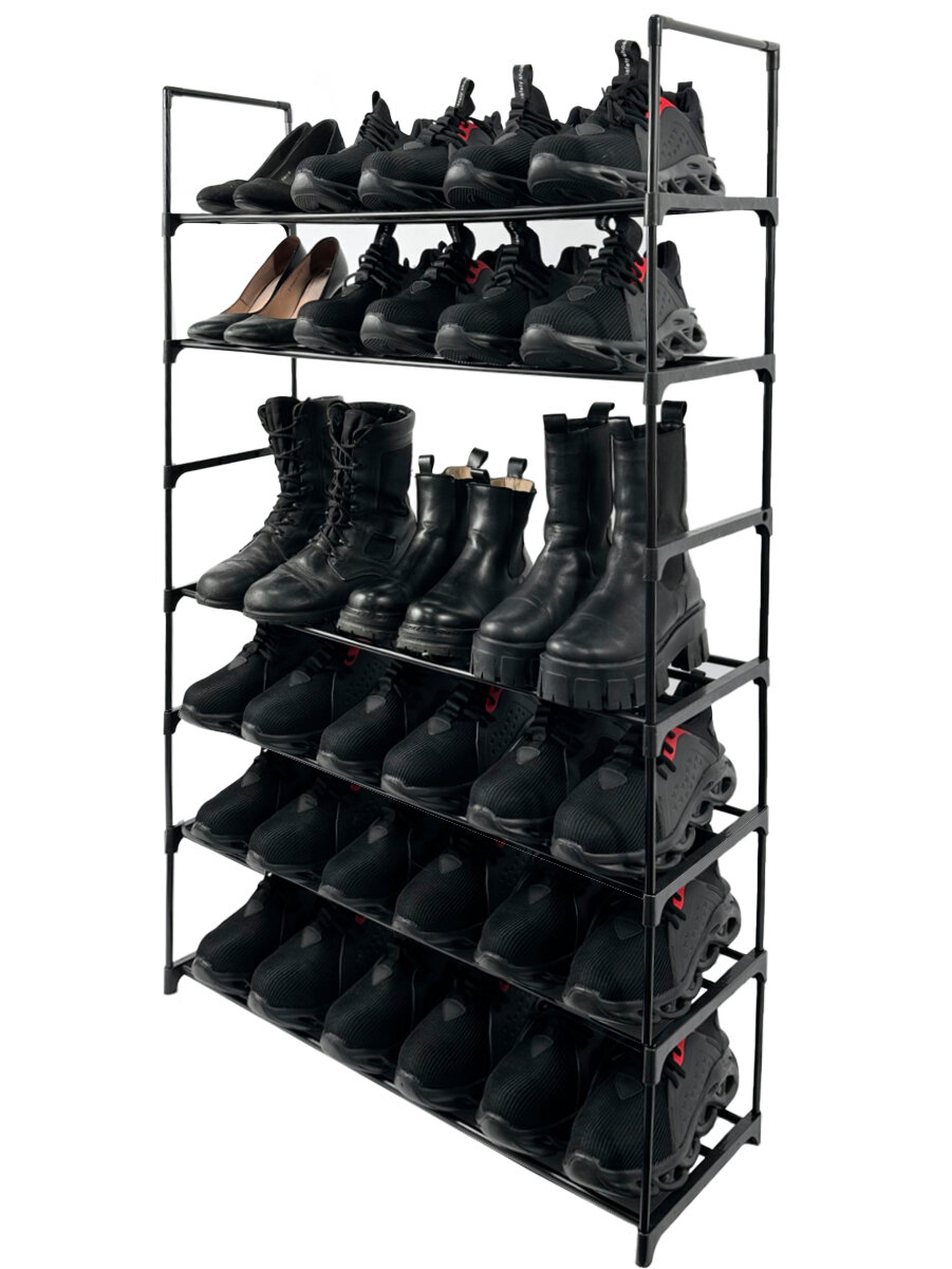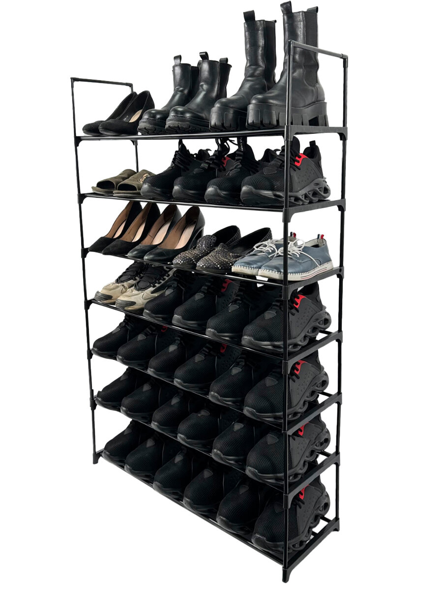 Купить Этажерка для обуви (обувница) в прихожую с 7 полками, нержавеющая сталь, 57х26х122 см, черная