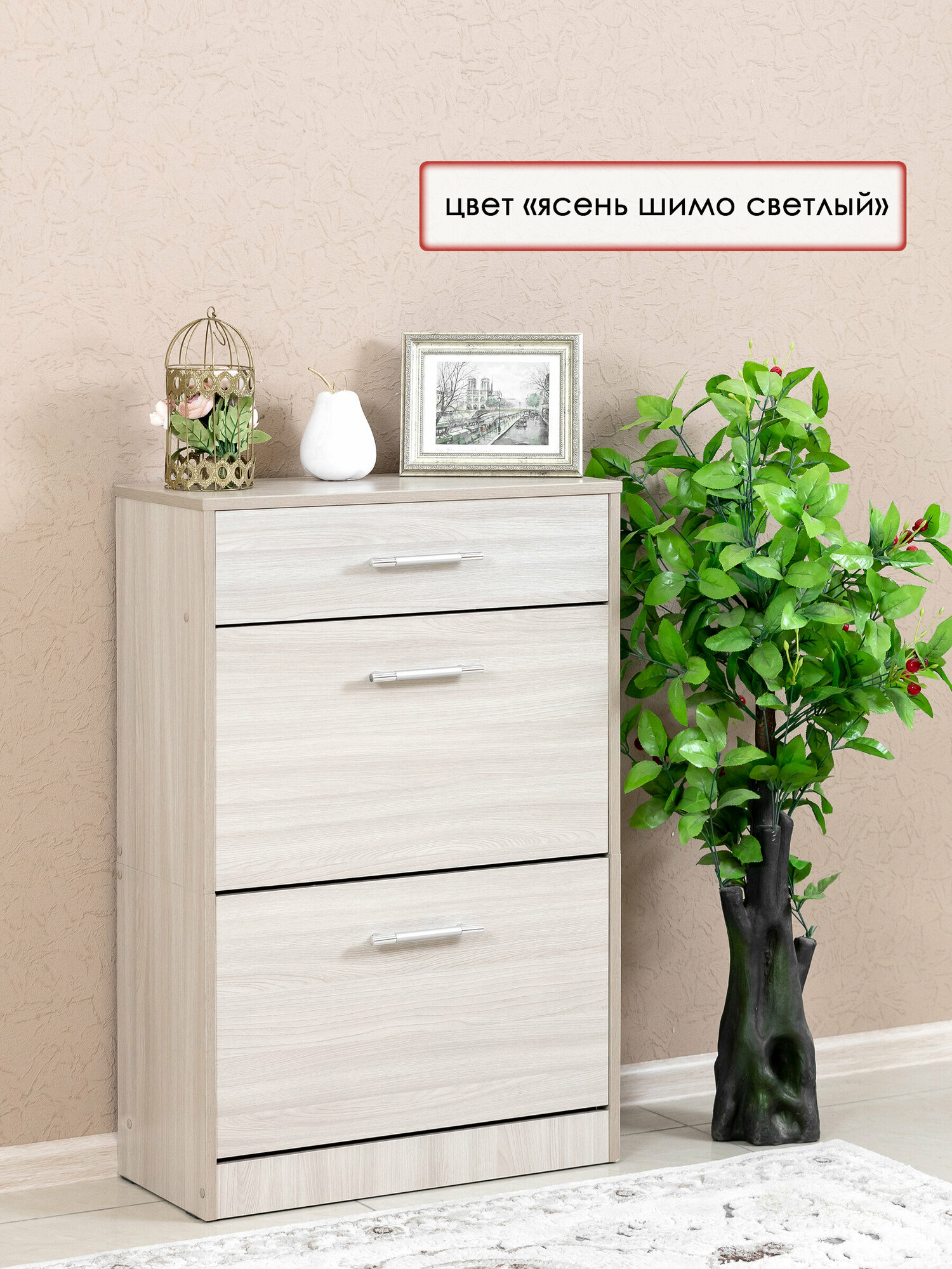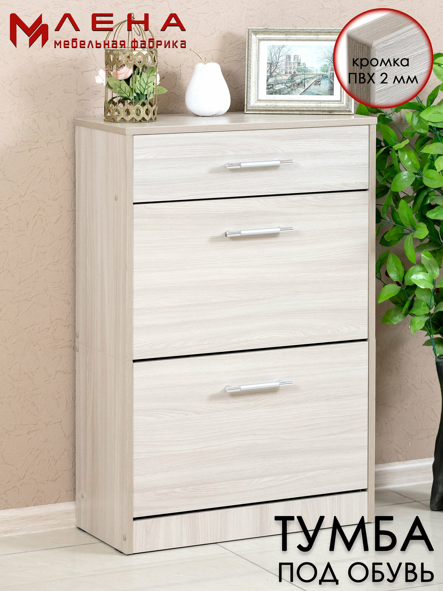 Обувница с выдвижным ящиком, тумба для обуви в цвете ясень шимо светлый, Мебельная фабрика лена интересное: