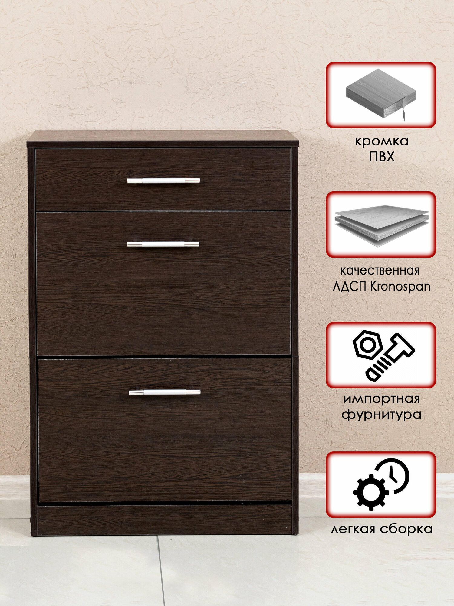 Обувница с выдвижным ящиком, тумба для обуви в цвете венге, Мебельная фабрика лена интересное:
