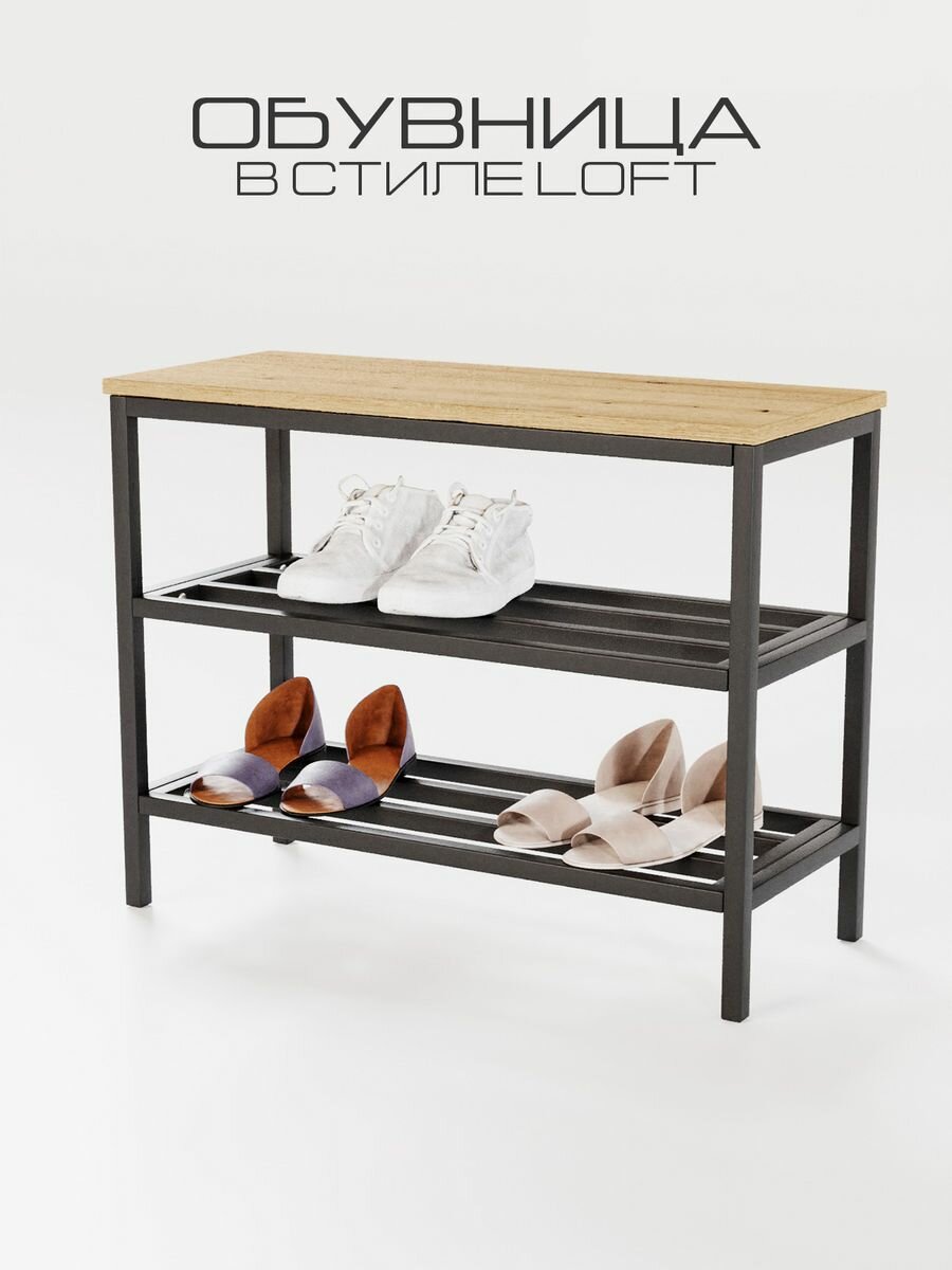 Обувница "IamLoft", металл, ЛДСП, дуб эвок, с сиденьем, высота 53, ширина 69, глубина 29