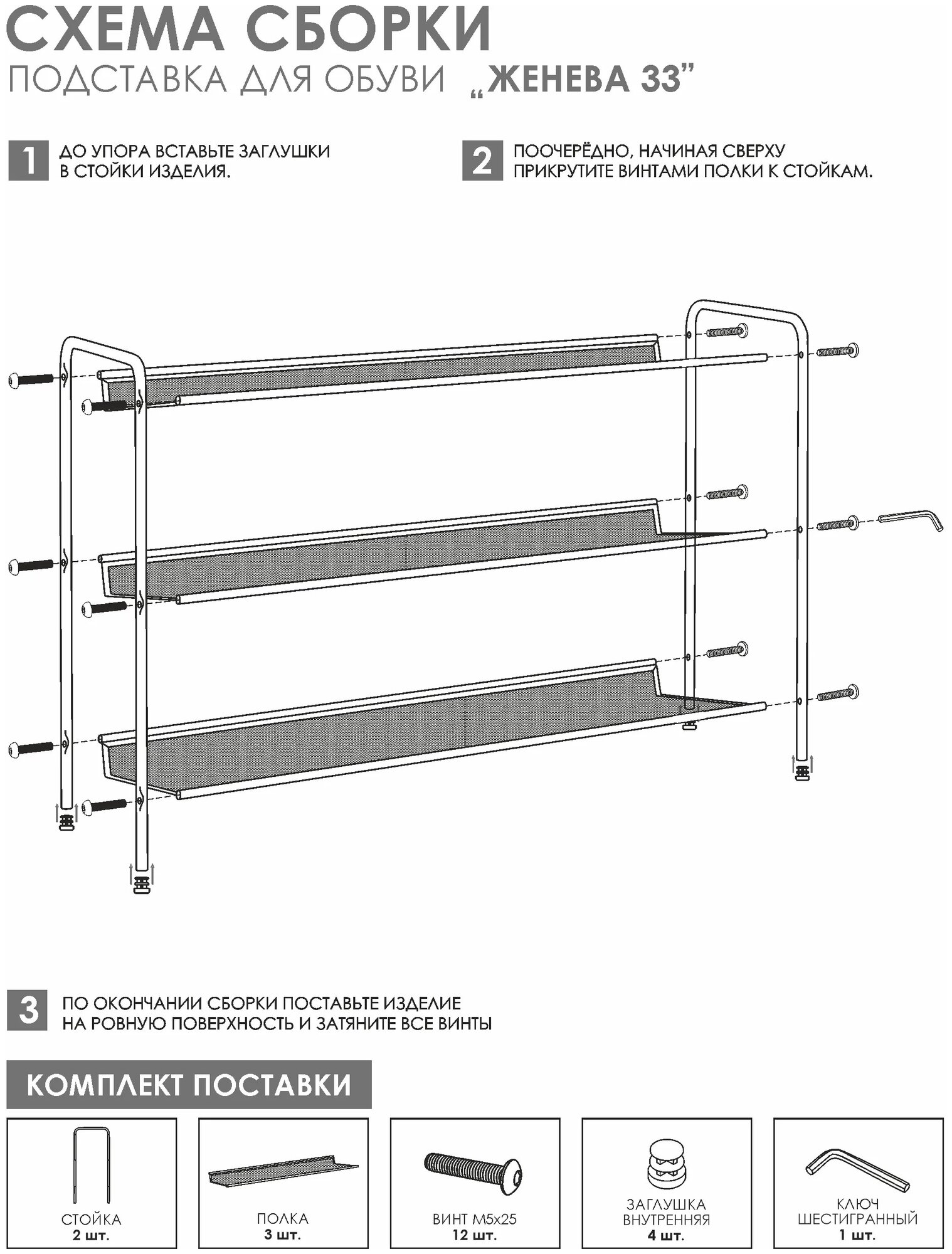 Подставка для обуви 3-х Женева 33 ( 600*865*270 мм) графит, ПДО Ж33 ГР