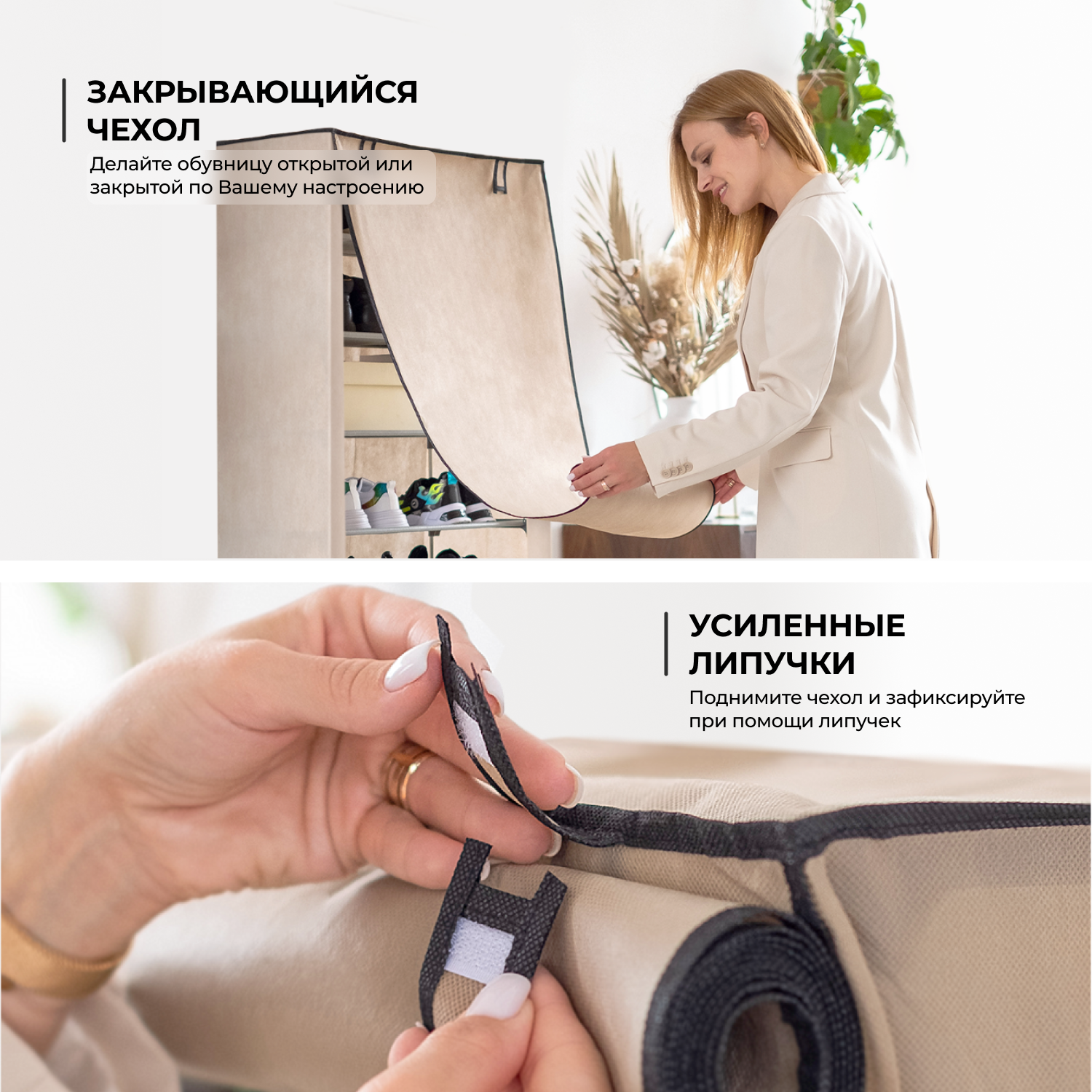 Обувница Besthouse с нетканым чехлом, 9 полок, бежевая интересное: