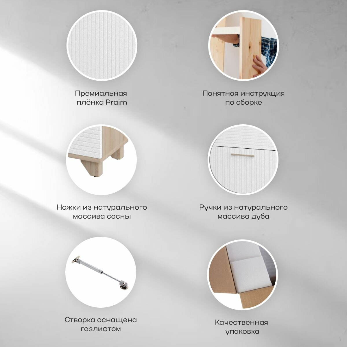 | Комплектация | Всё для сборки находиться в 3 упаковках: фасад - 1 уп., корпус - 1 уп., фурнитура - 1 уп., инструкция по сборке - 1 шт. |