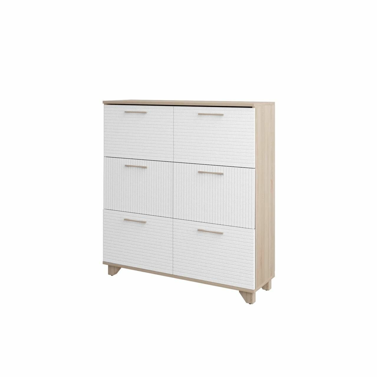 Обувница Копенгаген 6 ящиков ЛДСП Дуб сонома / МДФ Белый матовый 100х30х95 интересное: