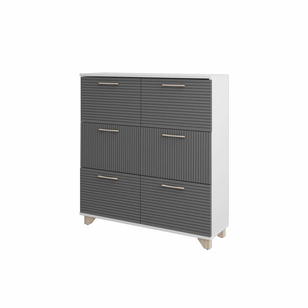 Купить Обувница Копенгаген 6 ящиков ЛДСП Белый шагрень / МДФ Серый графит 100х30х95