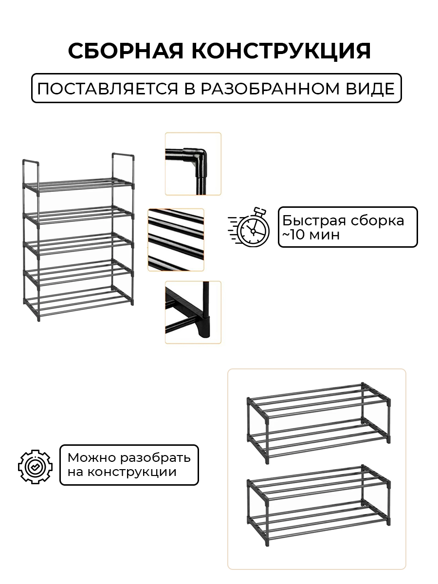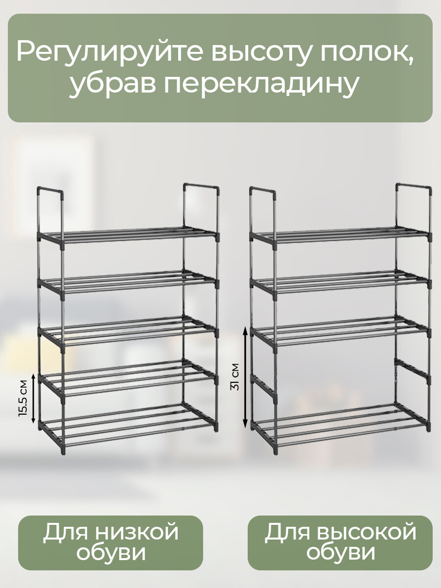 Этажерка для обуви (обувница) в прихожую с 5 полками, нержавеющая сталь, 57х26х88 см, черная интересное: