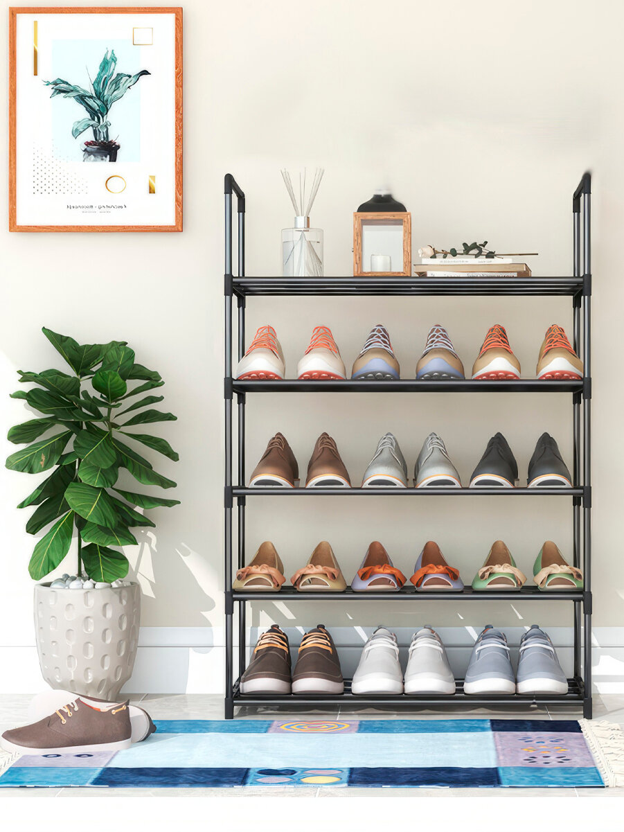 Купить Этажерка для обуви (обувница) в прихожую с 5 полками, нержавеющая сталь, 57х26х88 см, черная