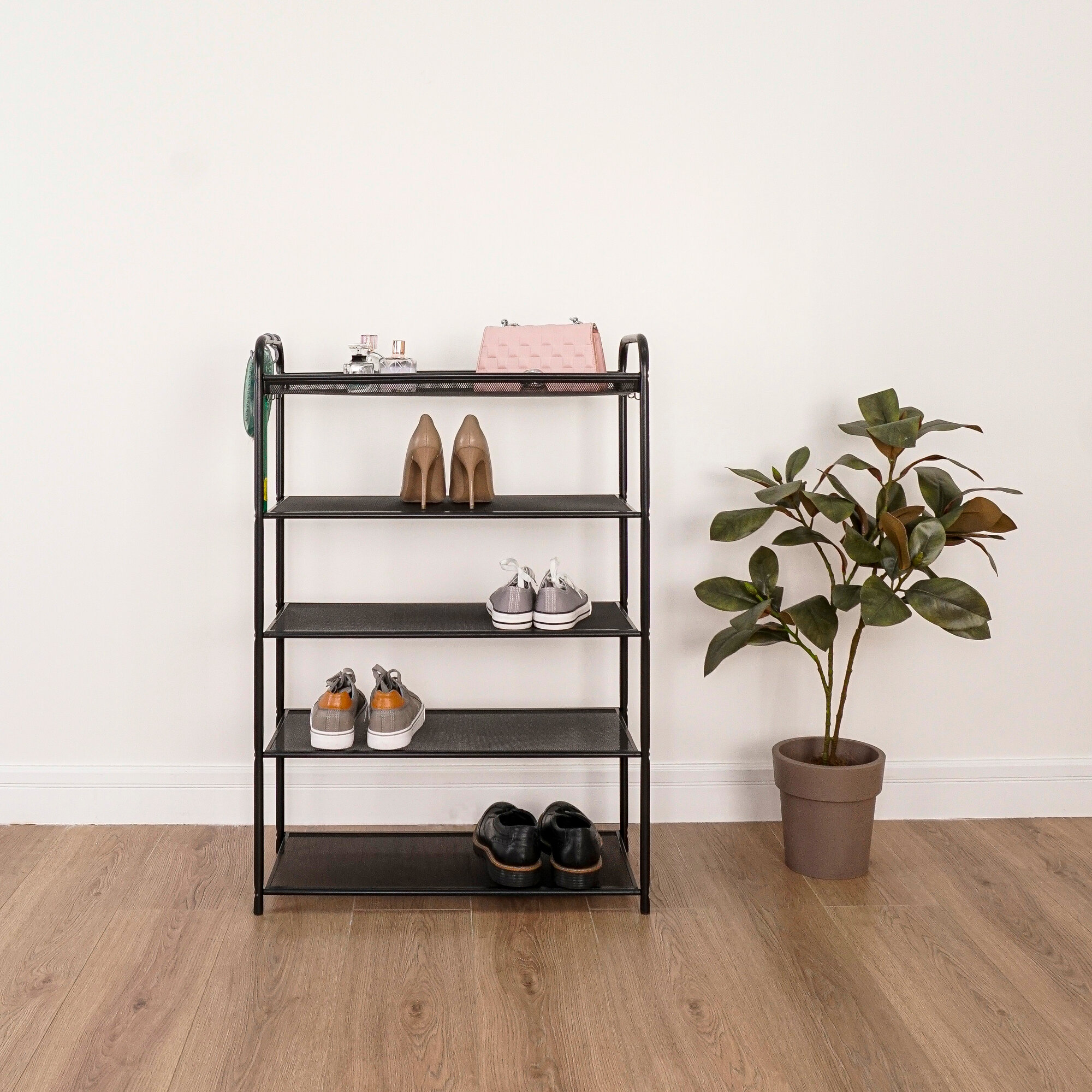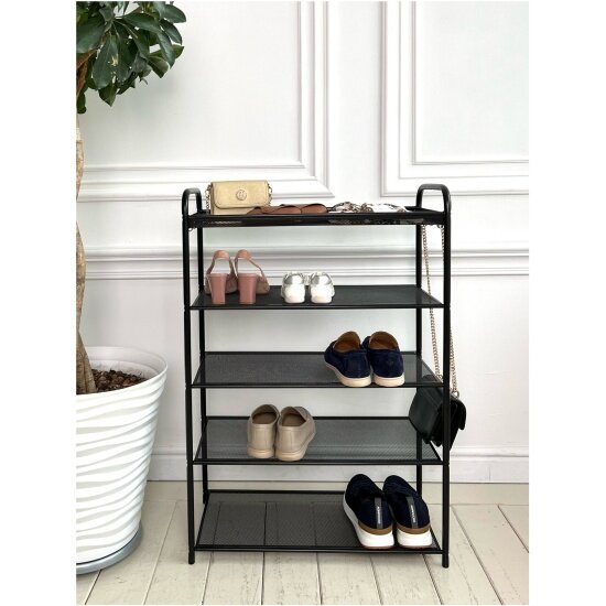 Обувница ЗМИ Верона 23, этажерка в прихожую на 9 пар обуви, 3 металлические полки, черная