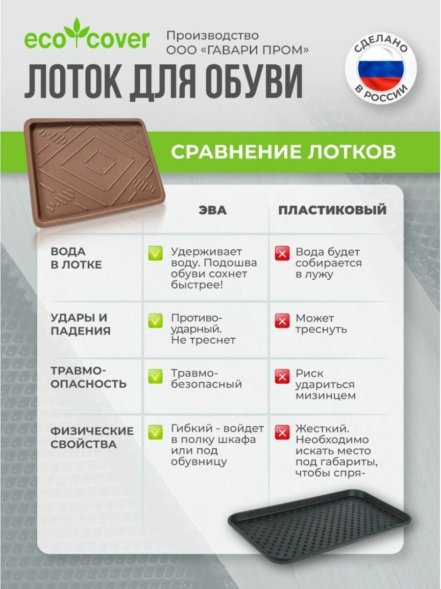 Лоток для обуви придверный EVA 33х54см коричневый интересное: