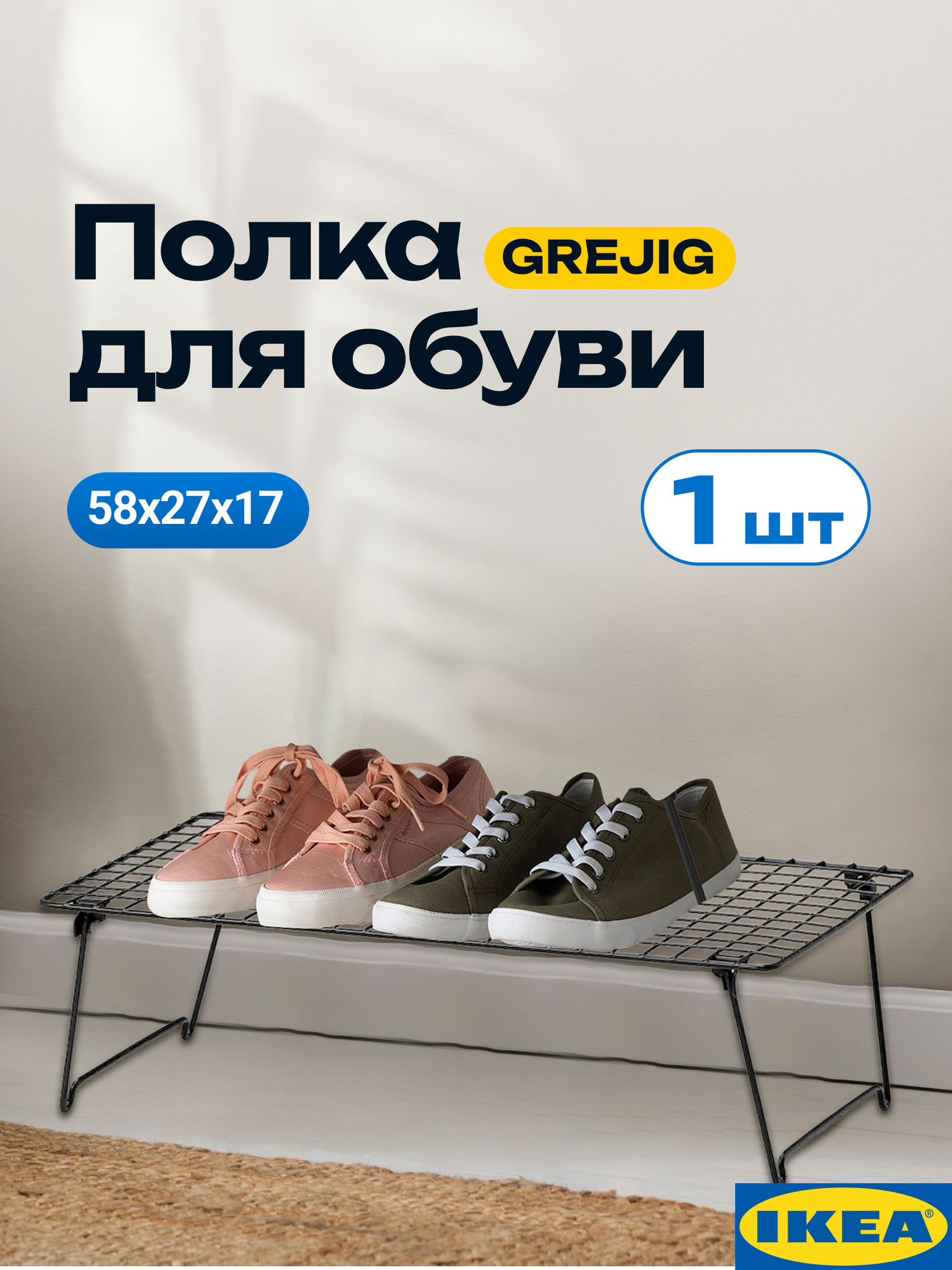 | Комплектация | Полка для обуви ИКЕА Грейг в заводской упаковке 1 шт. |