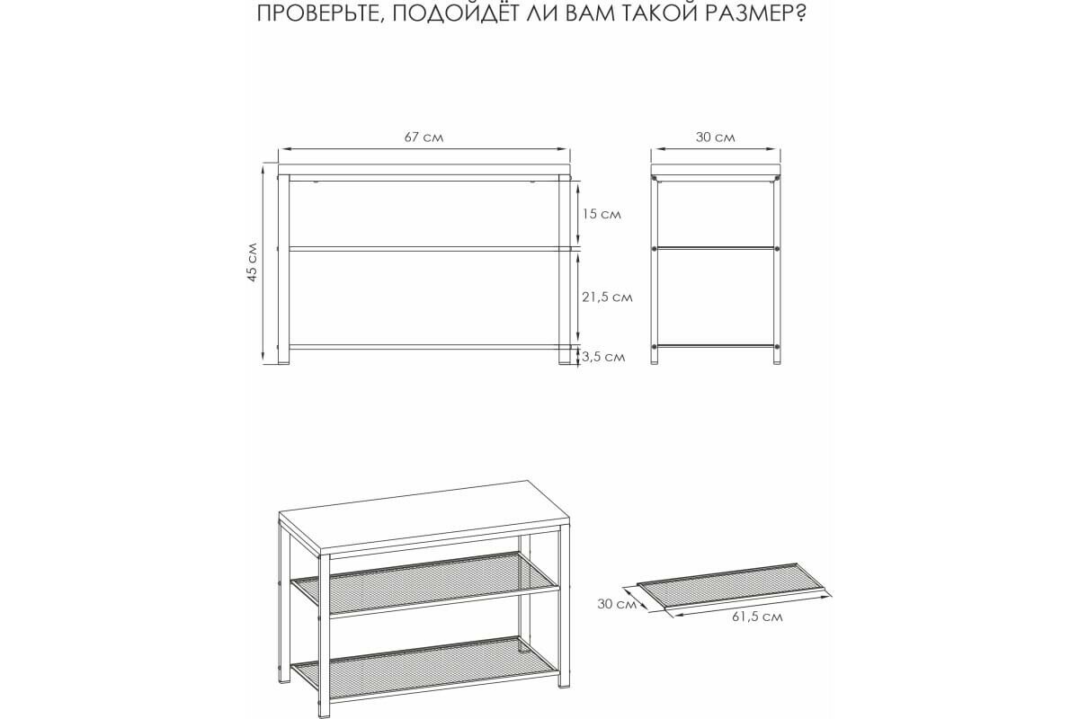 Не определен Этажерка для обуви с сиденьем (ЭТП3/С), 2 полки, 79×33×52,2 см, цвет серый