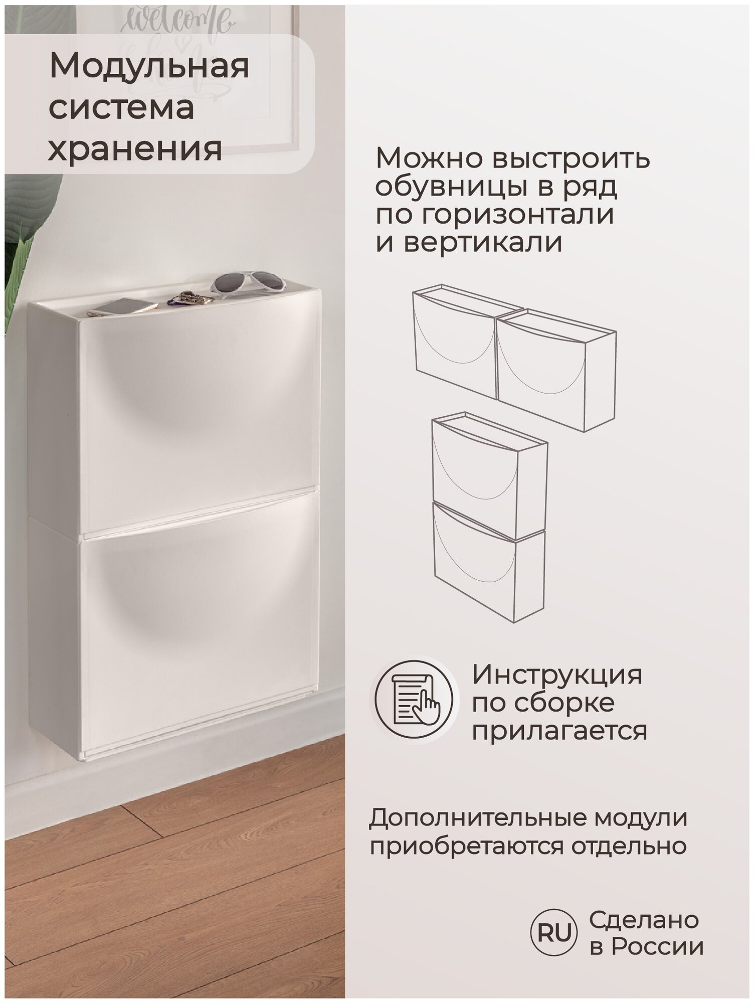 | Дополнительная информация | верхняя полка обувницы подходит для хранения легких предметов: ключей, кошельков, перчаток |