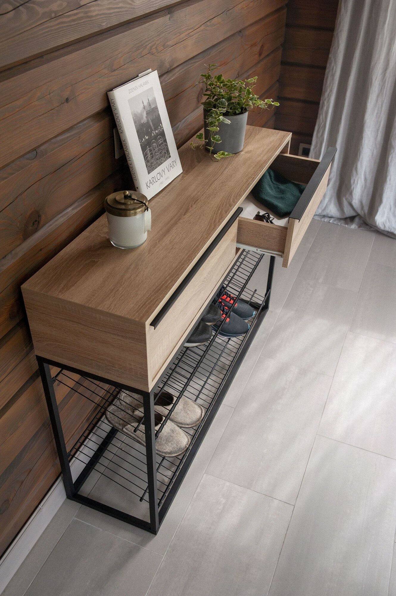Купить Обувница Мебельсон Крафт 2 Черный муар/дуб сонома