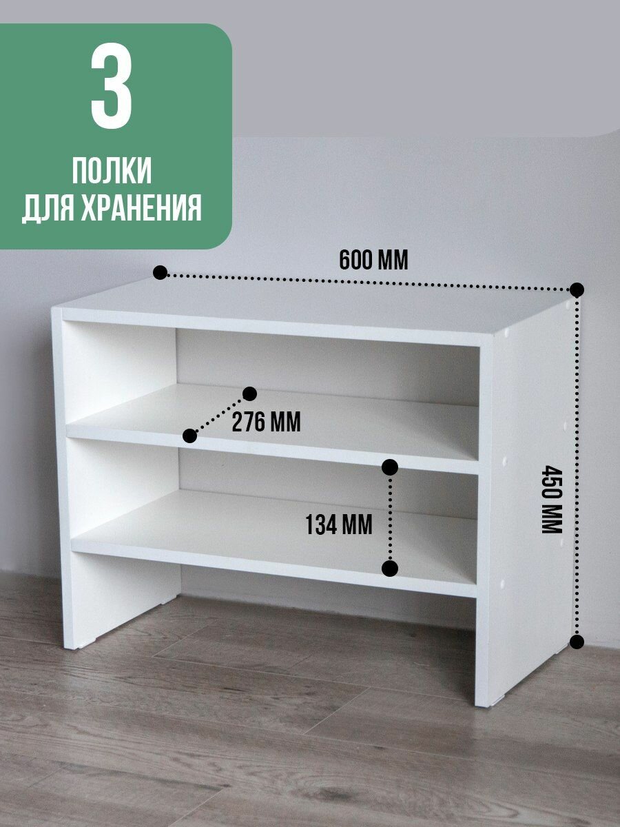 "Обувница Alubalu" - белая полка в прихожую с тремя отделениями для обуви интересное: