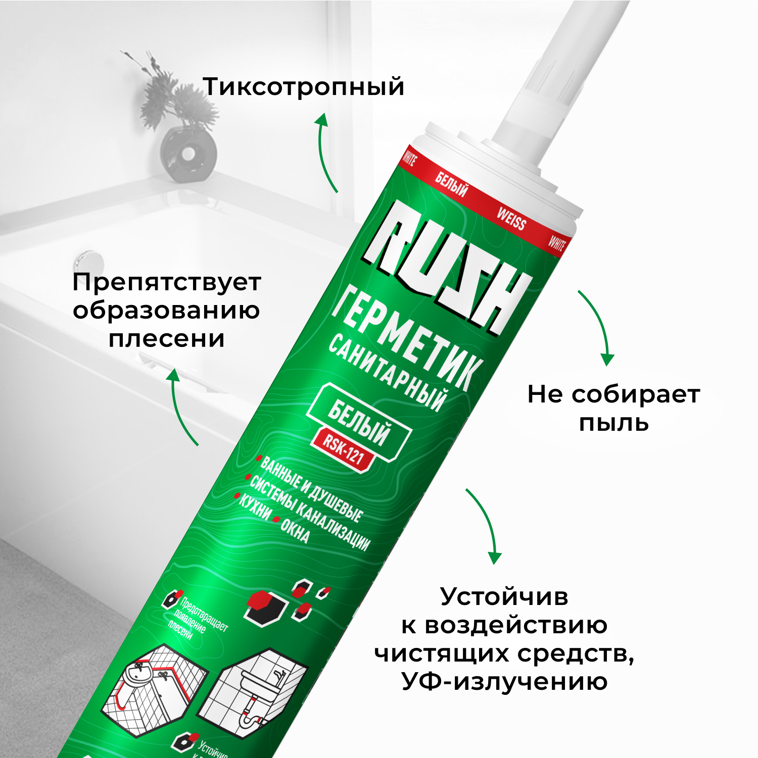 Герметик силиконовый санитарный RUSH, белый, RSK-121 интересное: