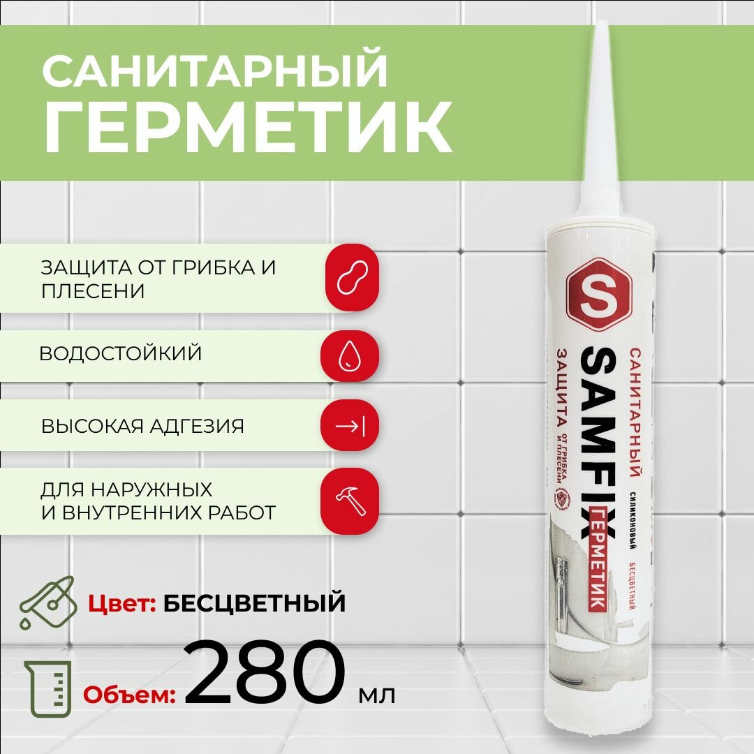 Герметик силиконовый санитарный прозрачный для ванной 280 мл 325 гр SAMGRUPP интересное: