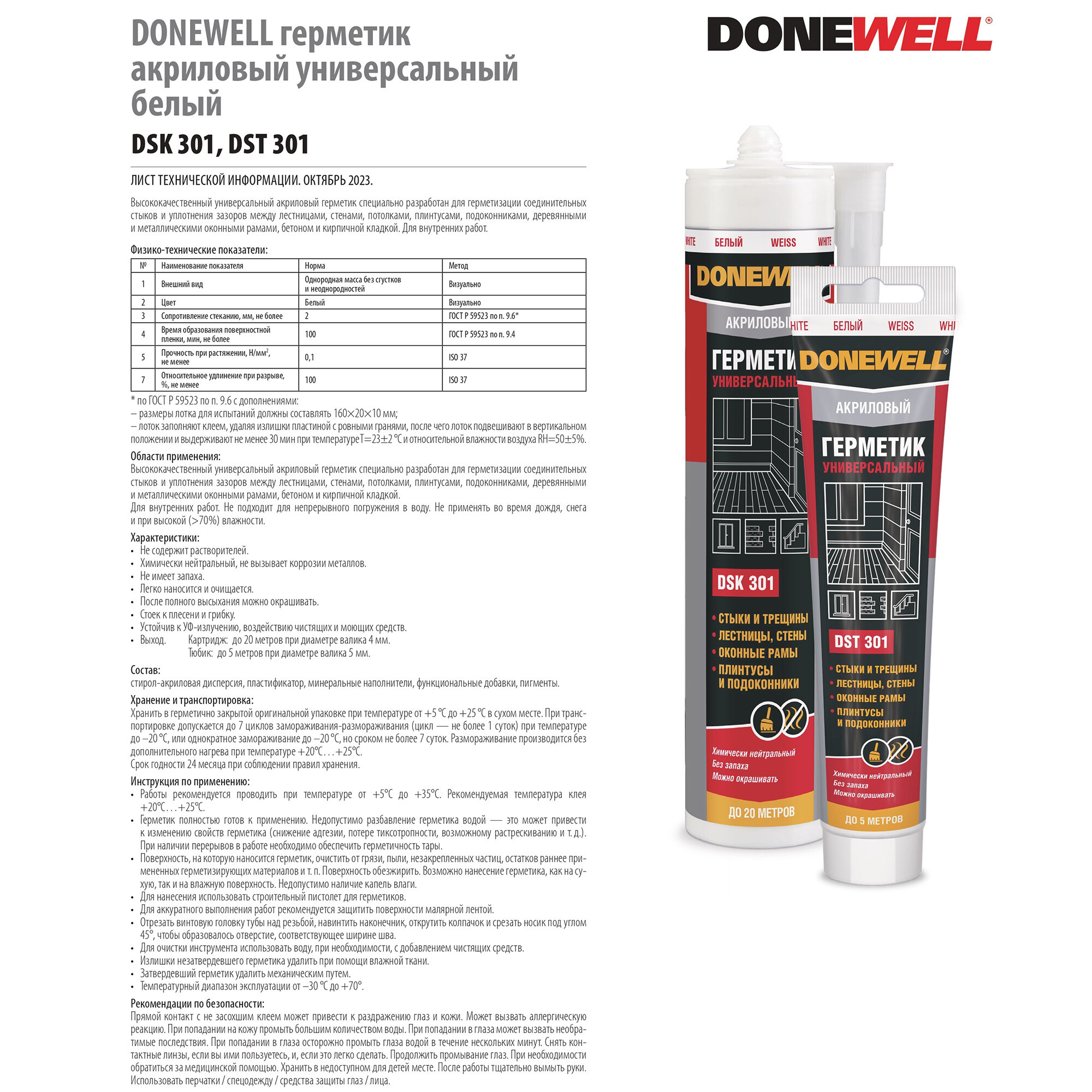 Герметик акриловый универсальный DoneWell DSK-301 белый 260 мл интересное: