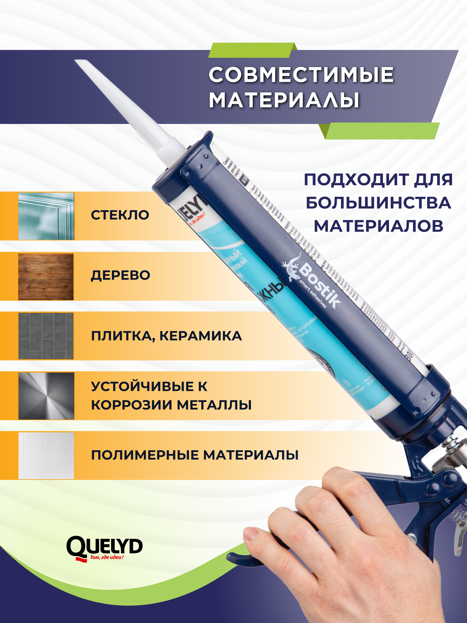 Санитарный силиконовый герметик для влажных зон QUELYD прозрачный, 300 мл 202302998 интересное: