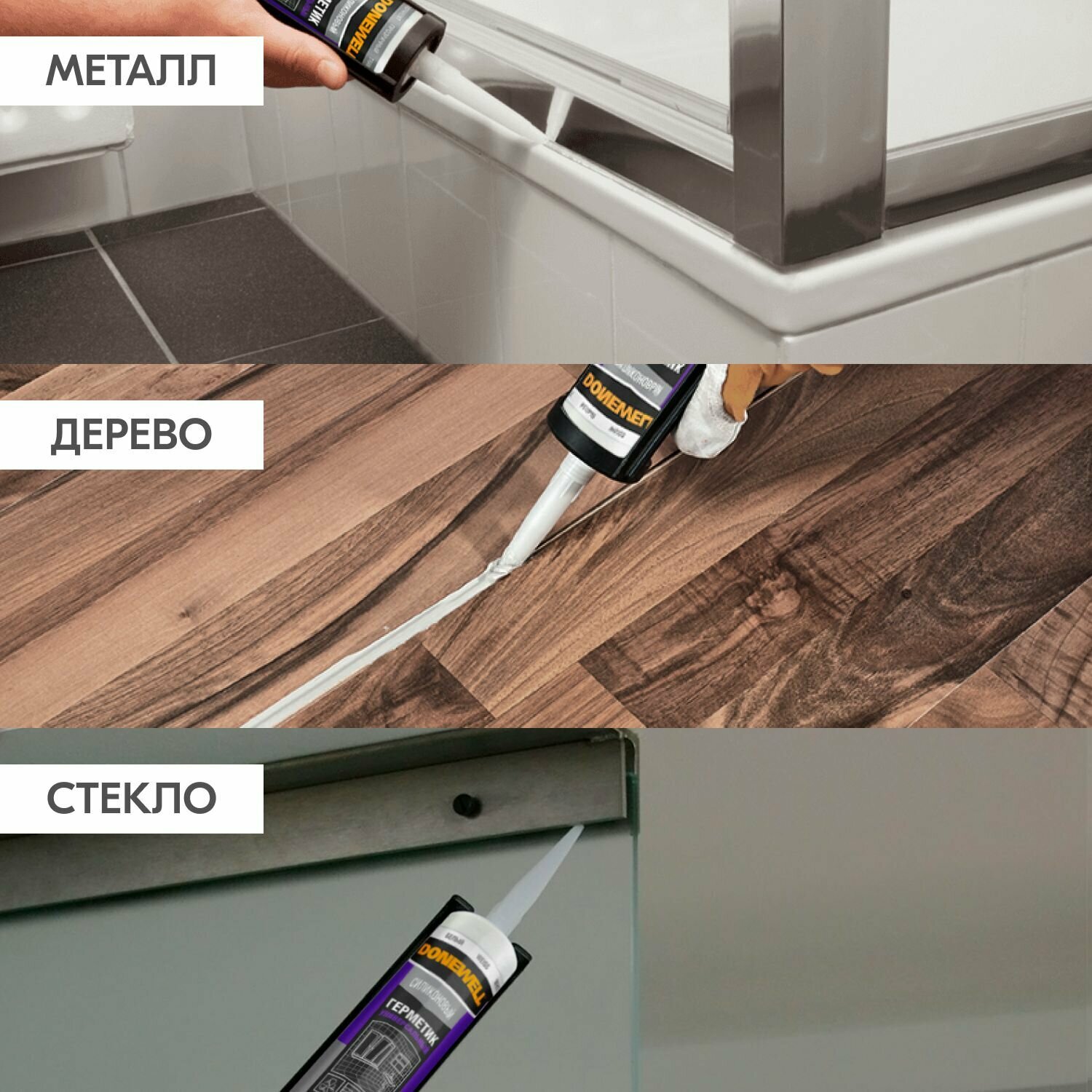 Герметик силиконовый DONEWELL санитарный DSK-120, для ванной и кухни, с добавкой против плесени, прозрачный, 260 мл