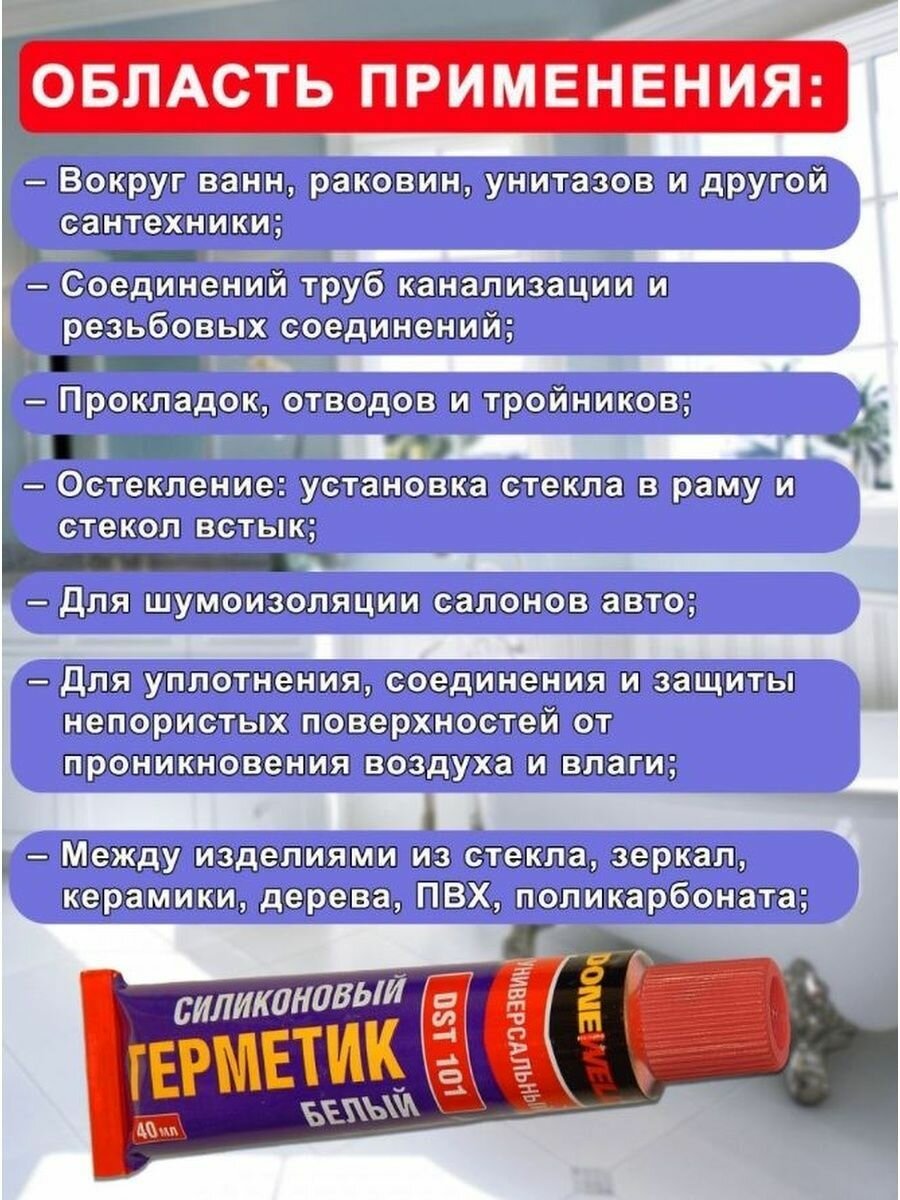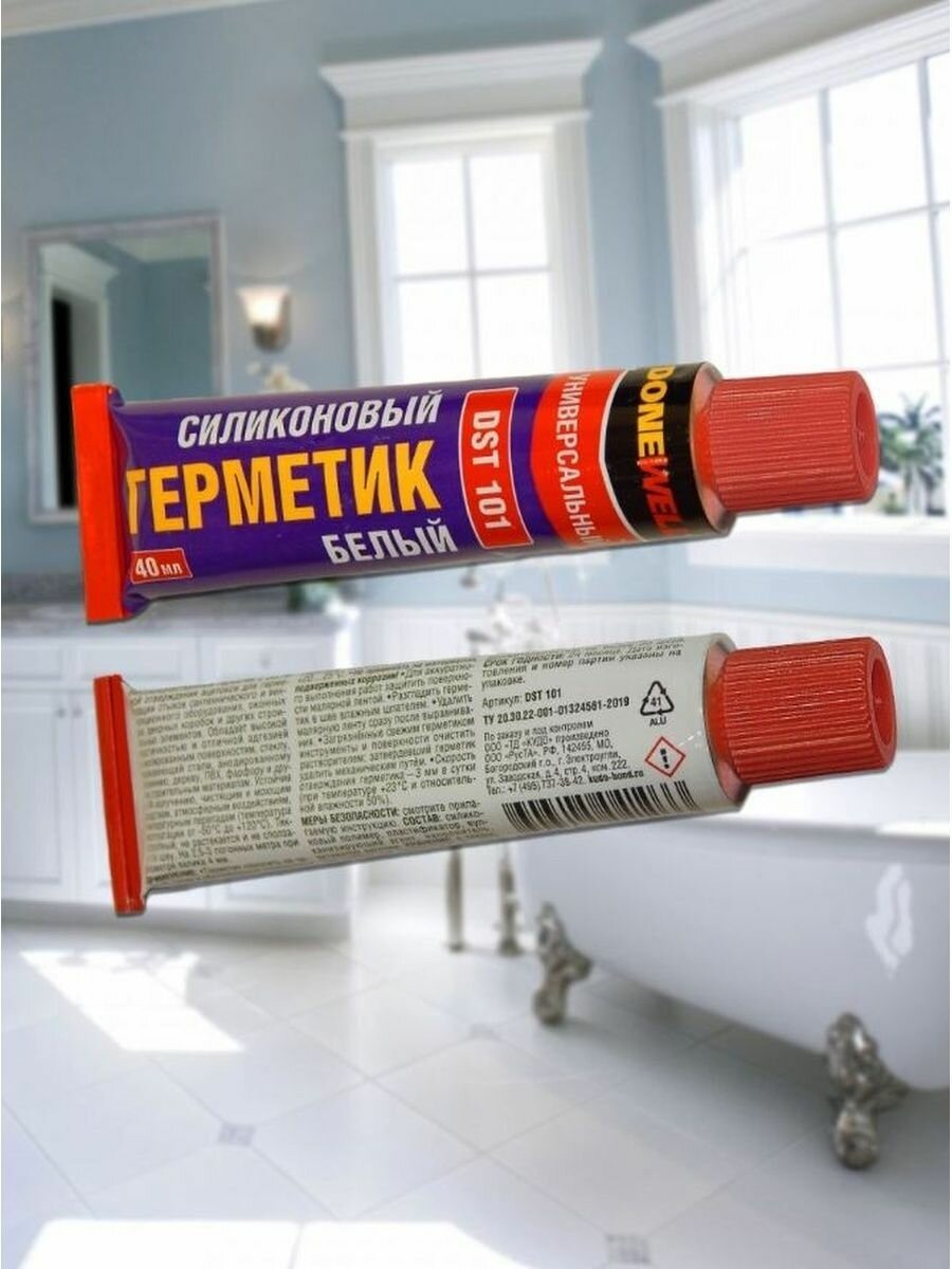 Герметик силиконовый DONEWELL санитарный DST-121, для ванной и кухни, с добавкой против плесени, белый, 40 мл