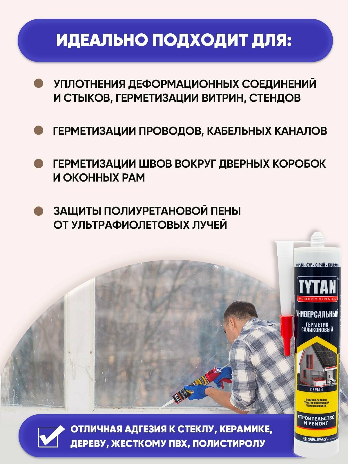 Ниже Вы можете прочитать отзывы на Герметик силиконовый универсальный Tytan Professional серый 280 мл, ознакомится с подробными характеристиками, посмотреть интересные обзоры и фотографии на Герметик силиконовый универсальный Tytan Professional серый 280 мл.