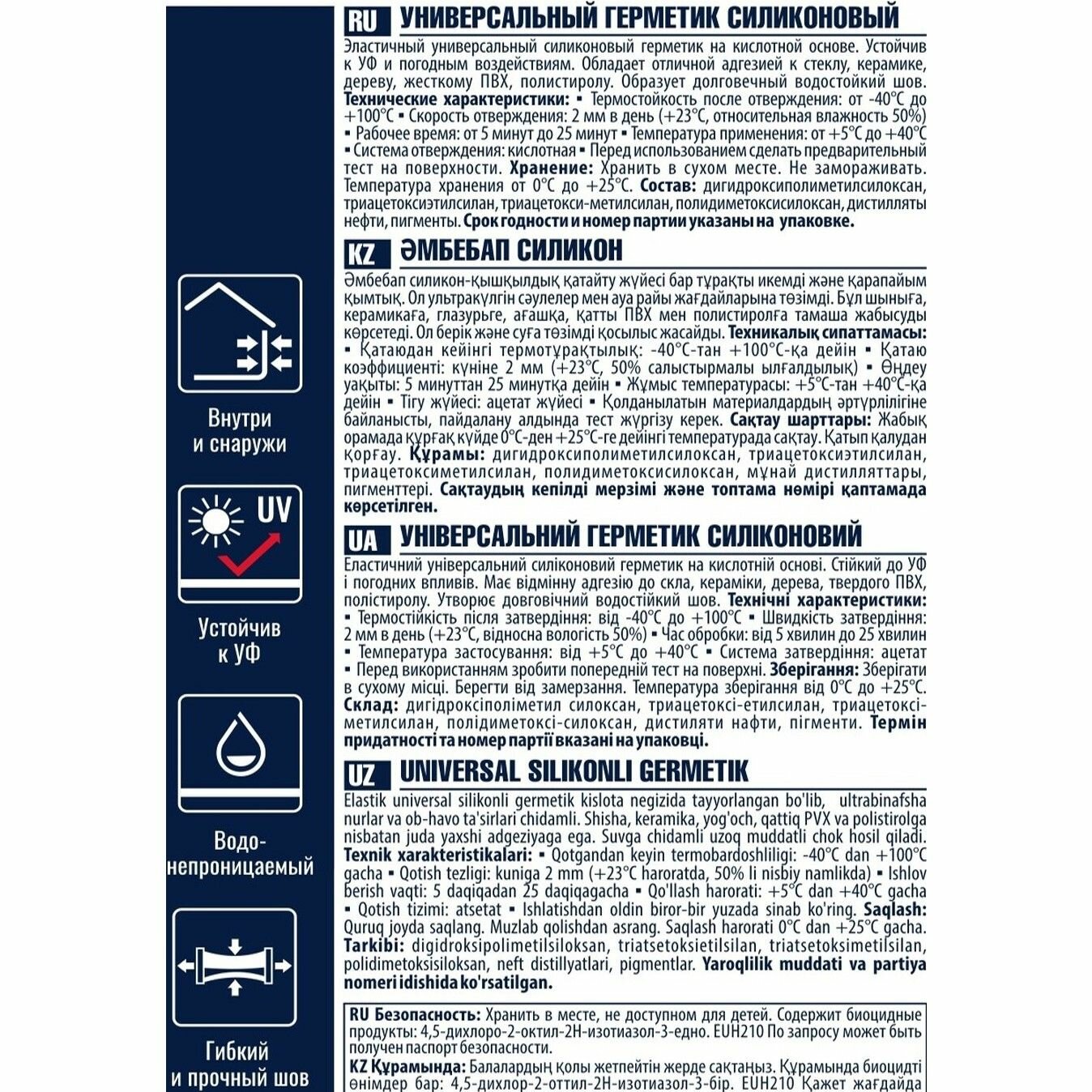 | Подробная комплектация | Герметик силиконовый Tytan универсальный прозрачный 280 мл уксусный |