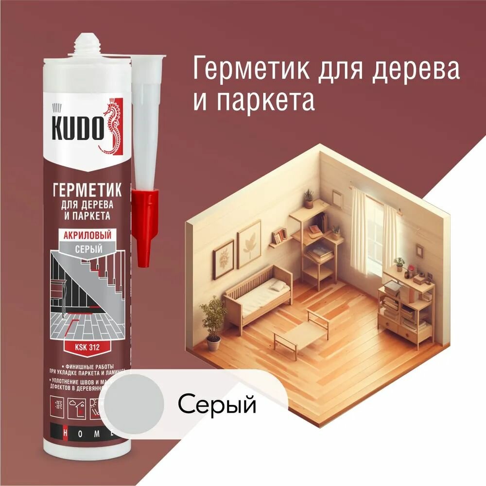 Герметик акриловый KUDO "KSK 312" для дерева и паркета, 280 мл, Серый