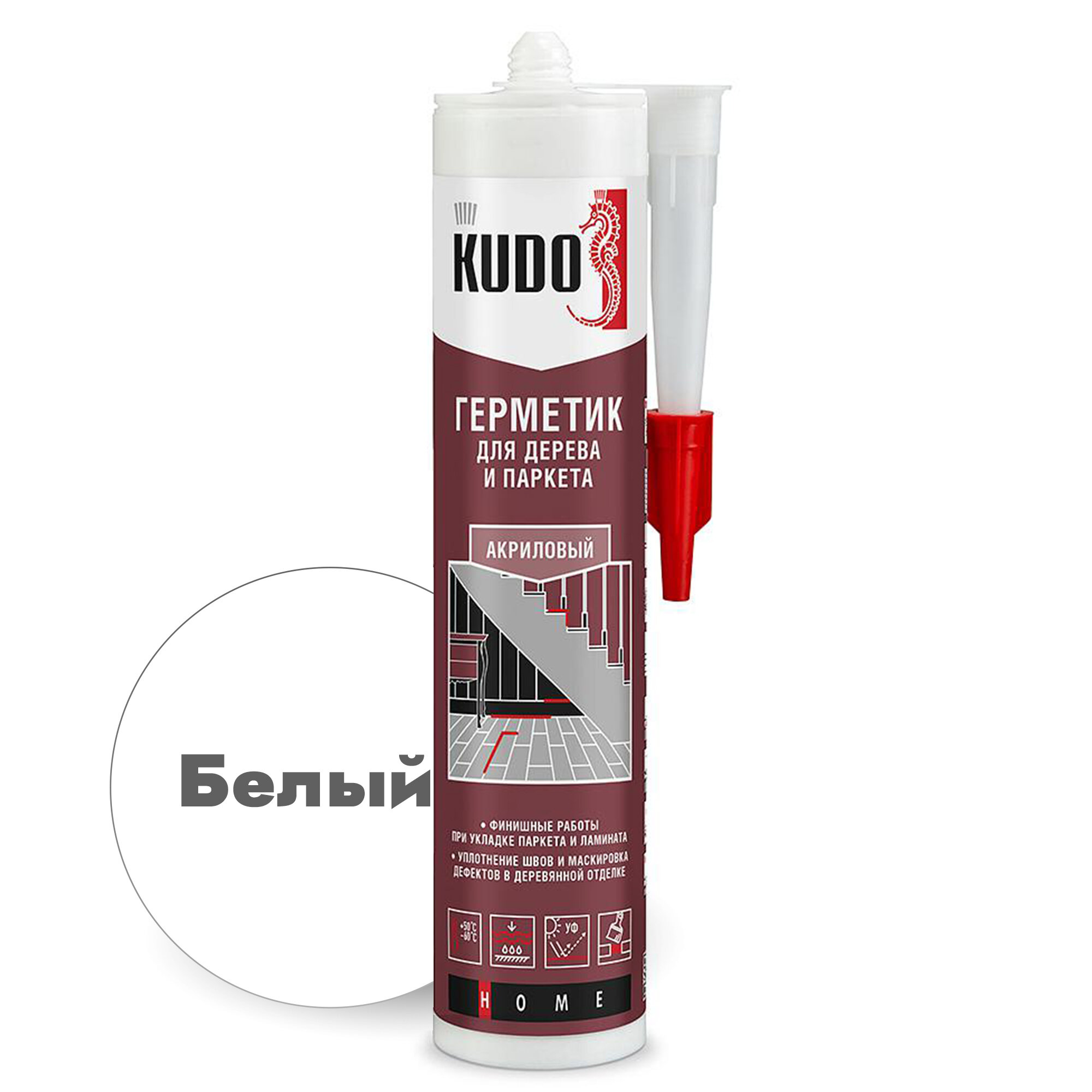 Герметик акриловый KUDO "KSK 311" для дерева и паркета, 280 мл, Белый