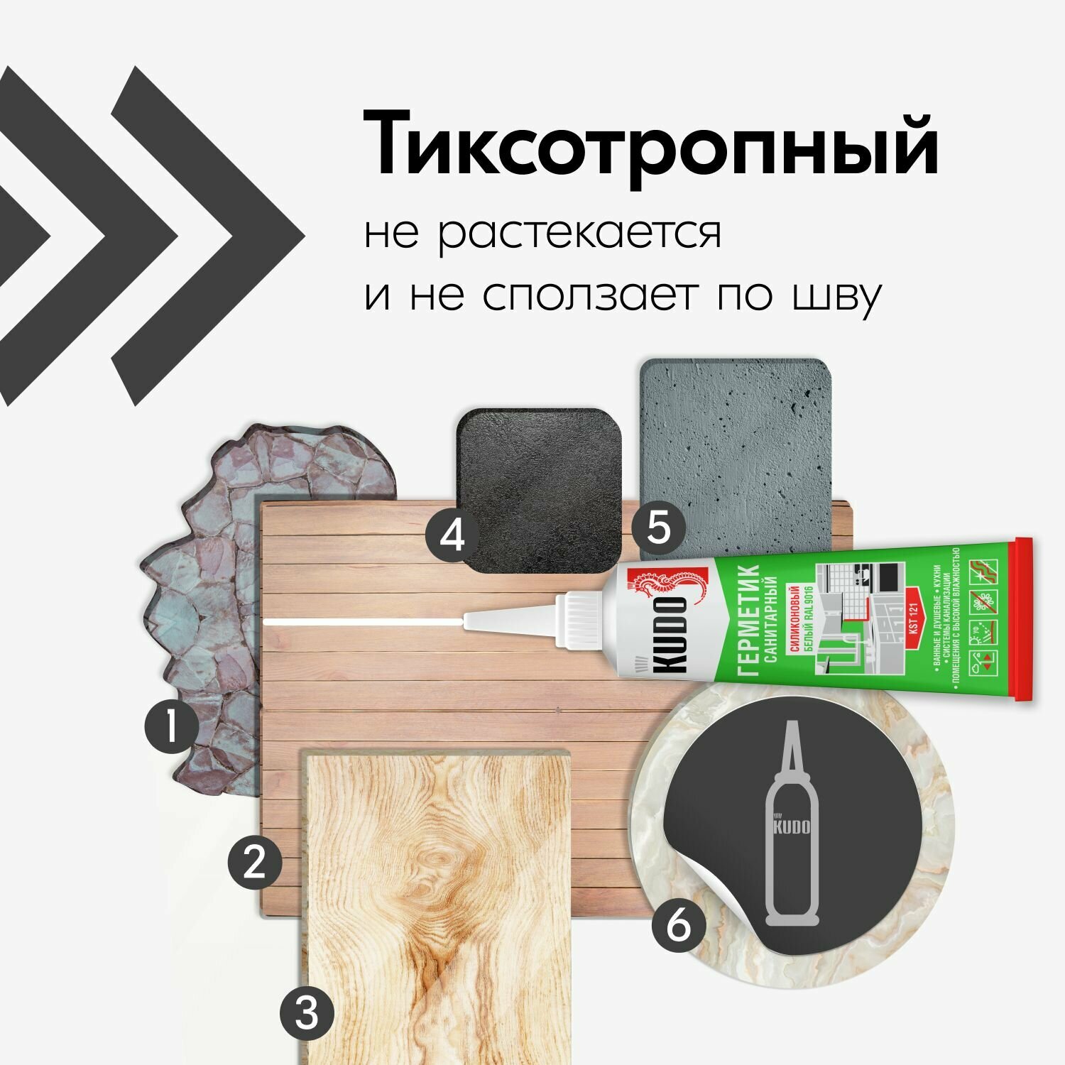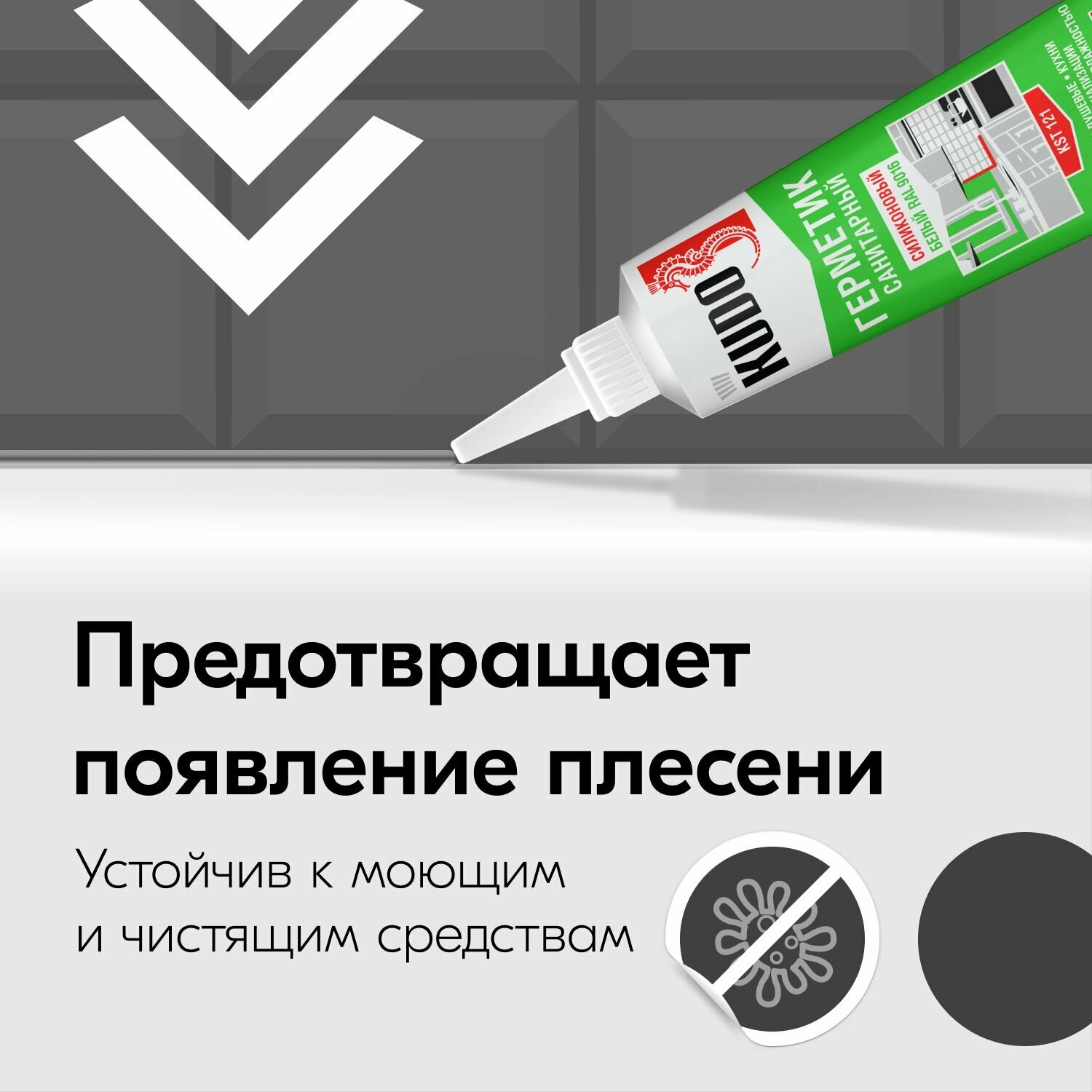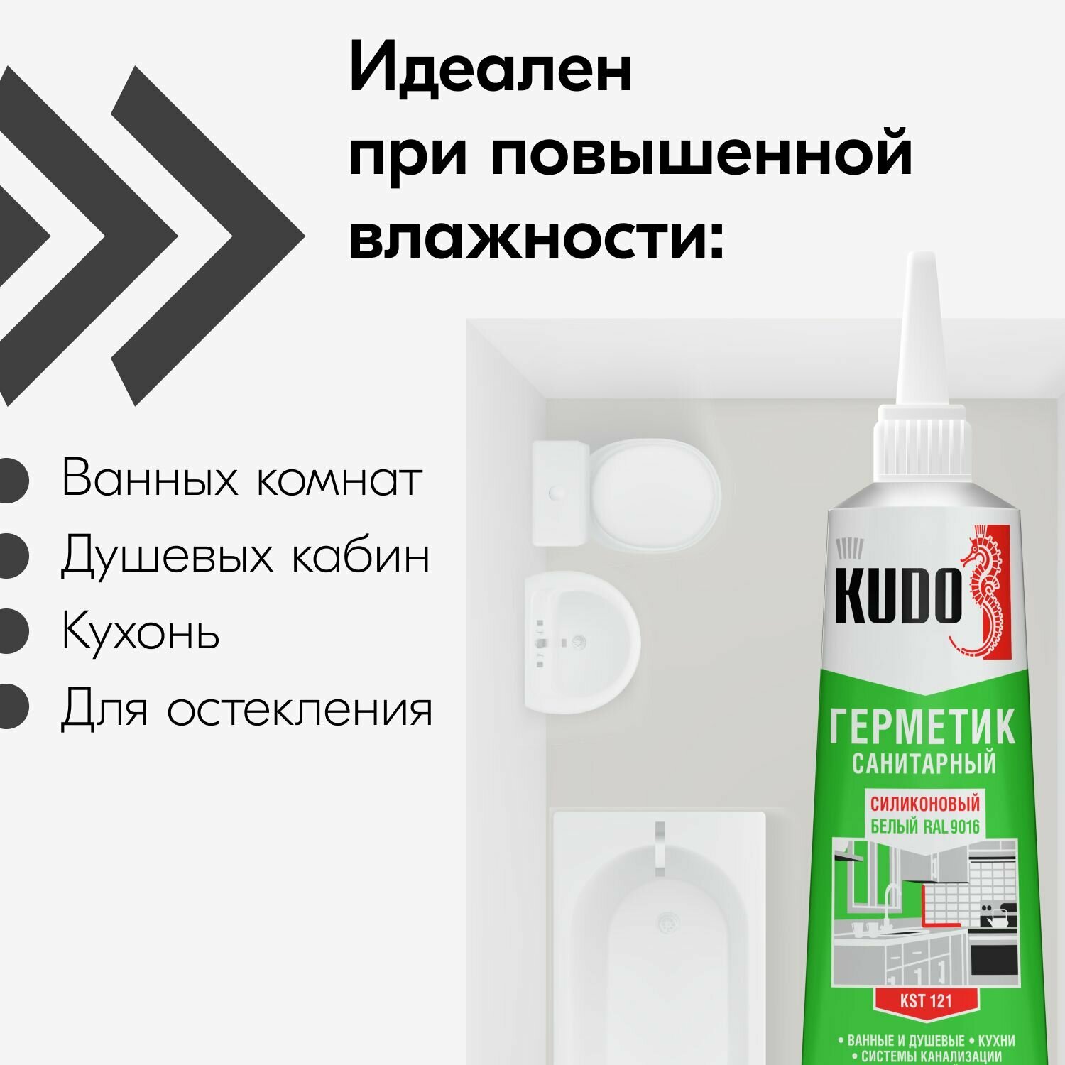 Герметик силиконовый санитарный KUDO "KST 121", для ванной и кухни, 85 мл, белый