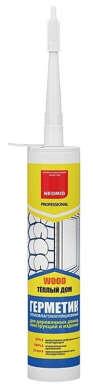 Герметик Межшовный для Сруба Neomid Wood Professional 310мл Белый Эластичный, Окрашиваемый / Неомид Вуд.