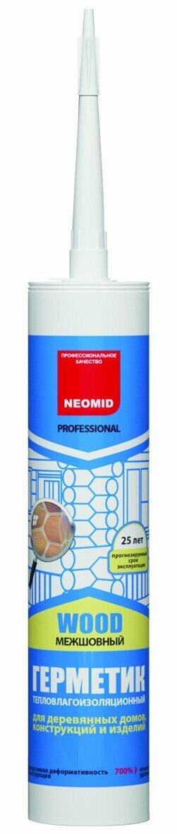Герметик Межшовный для Сруба Neomid Wood Professional 310мл Белый Эластичный, Окрашиваемый / Неомид Вуд.