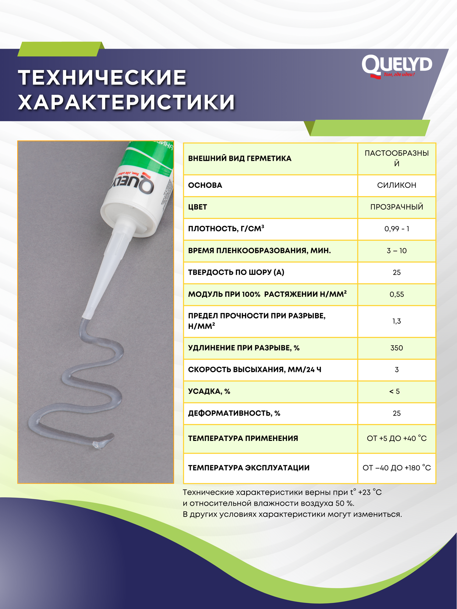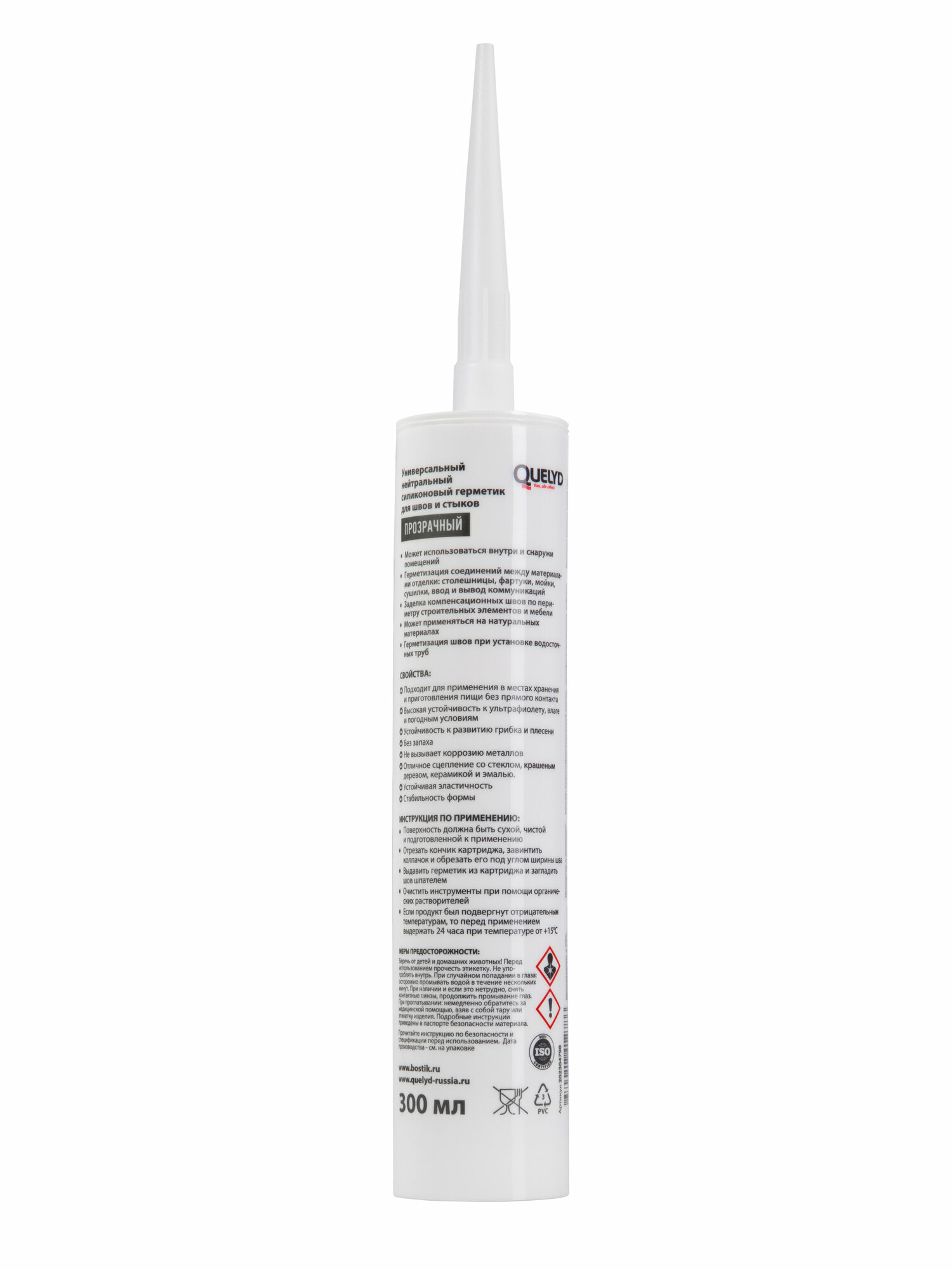 Универсальный нейтральный силиконовый герметик Quelyd для швов и стыков прозрачный 300мл