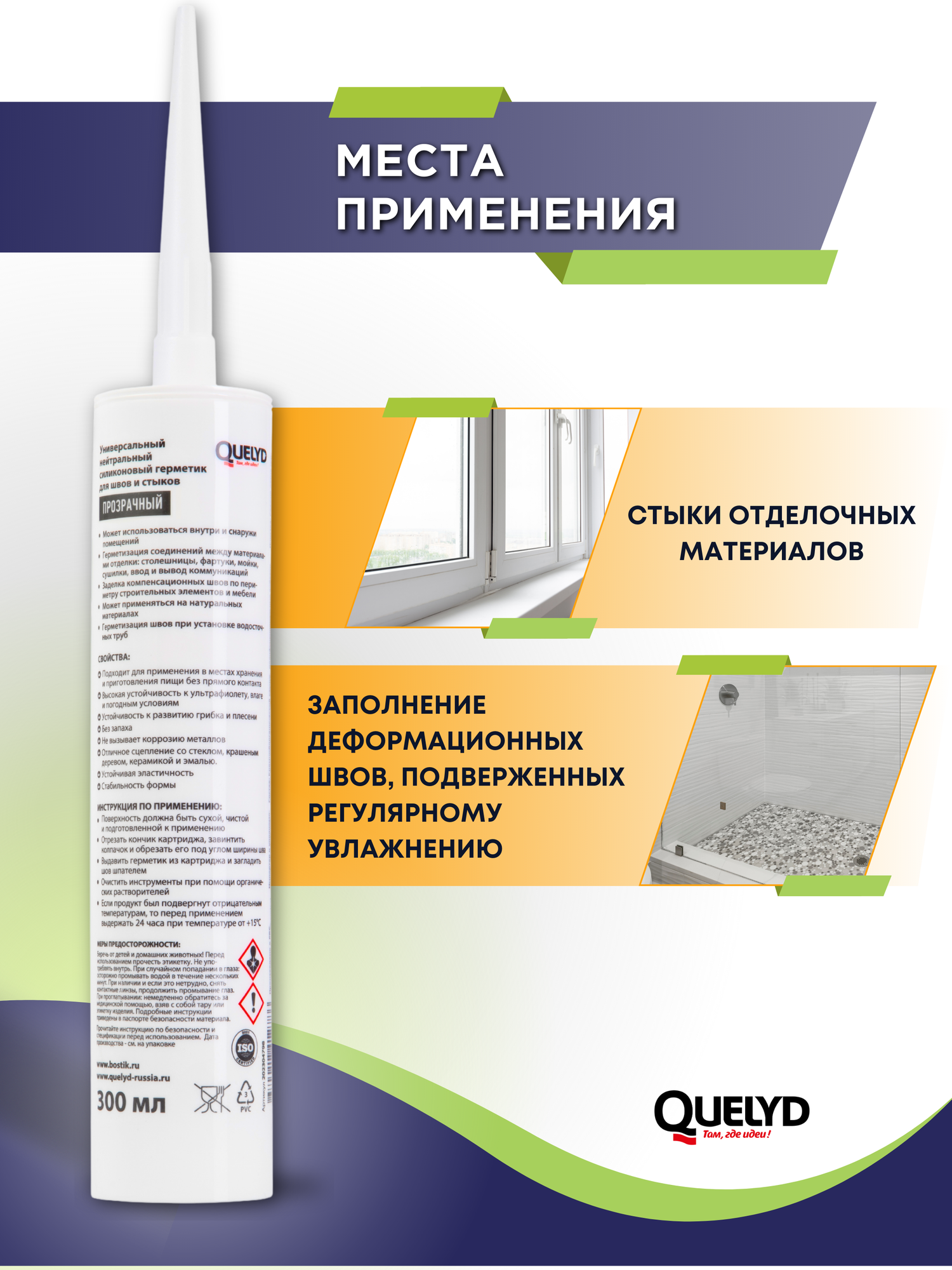 Купить Quelyd Универсальный силиконовый герметик для швов и стыков прозрачный. 300 мл 202304798