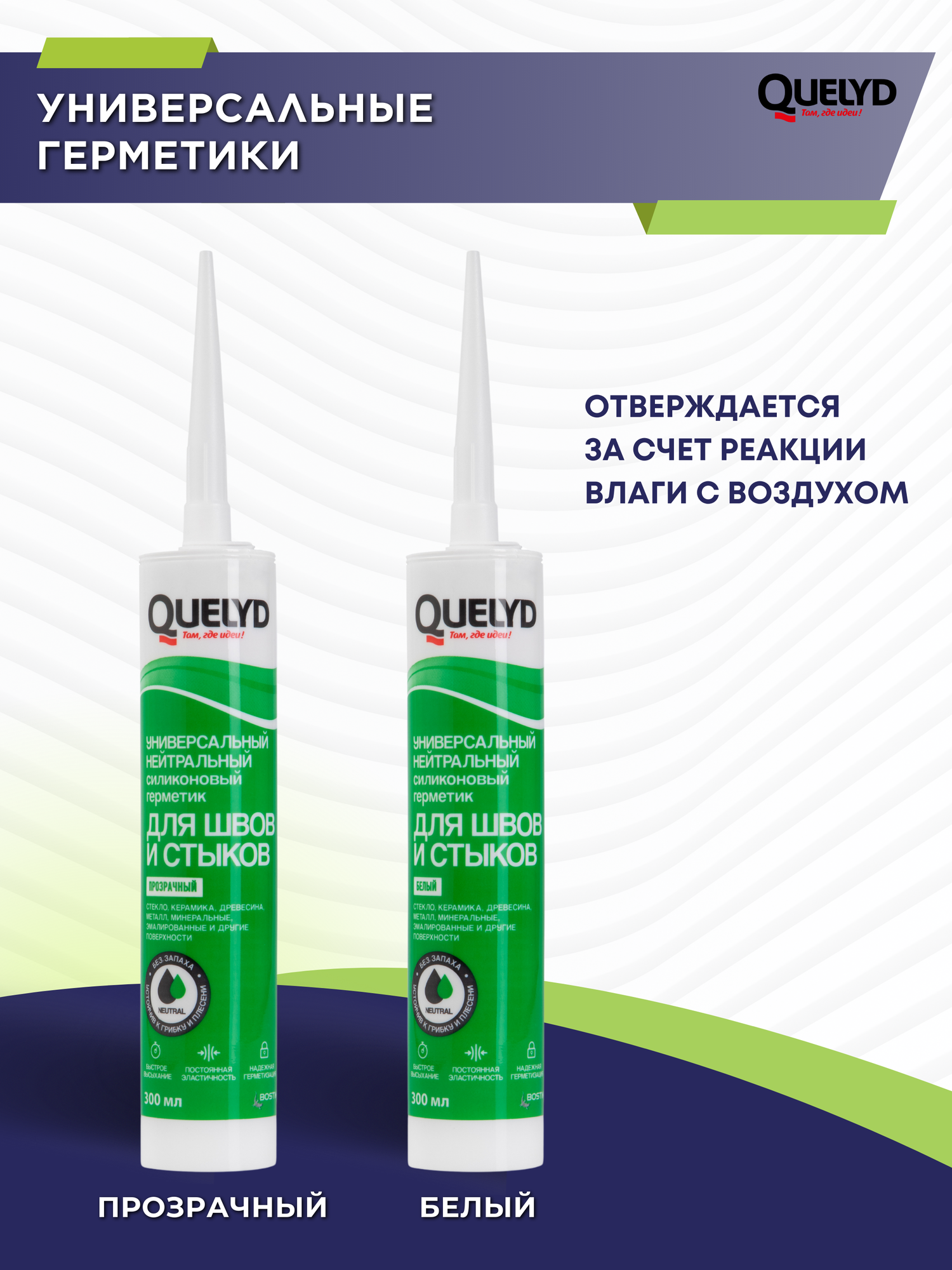 Герметик силикон универсальный нейтральный Quelyd для швов и стыков белый 300 мл