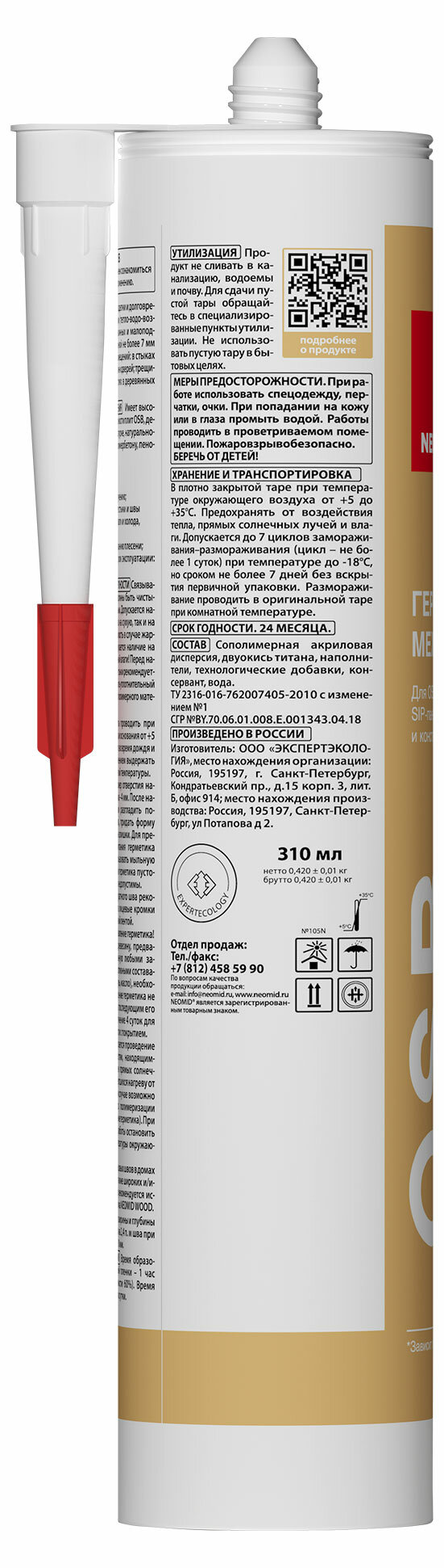 Герметик строительный для OSB-плит и деревянных поверхностей NEOMID (310 мл.) картридж (белый)