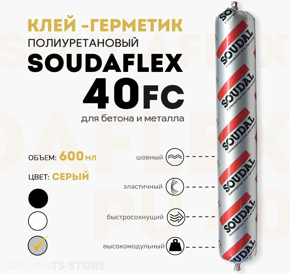 Soudal soudalflex 40 FC клей-герметик полиуретановый (серый, 600 мл)