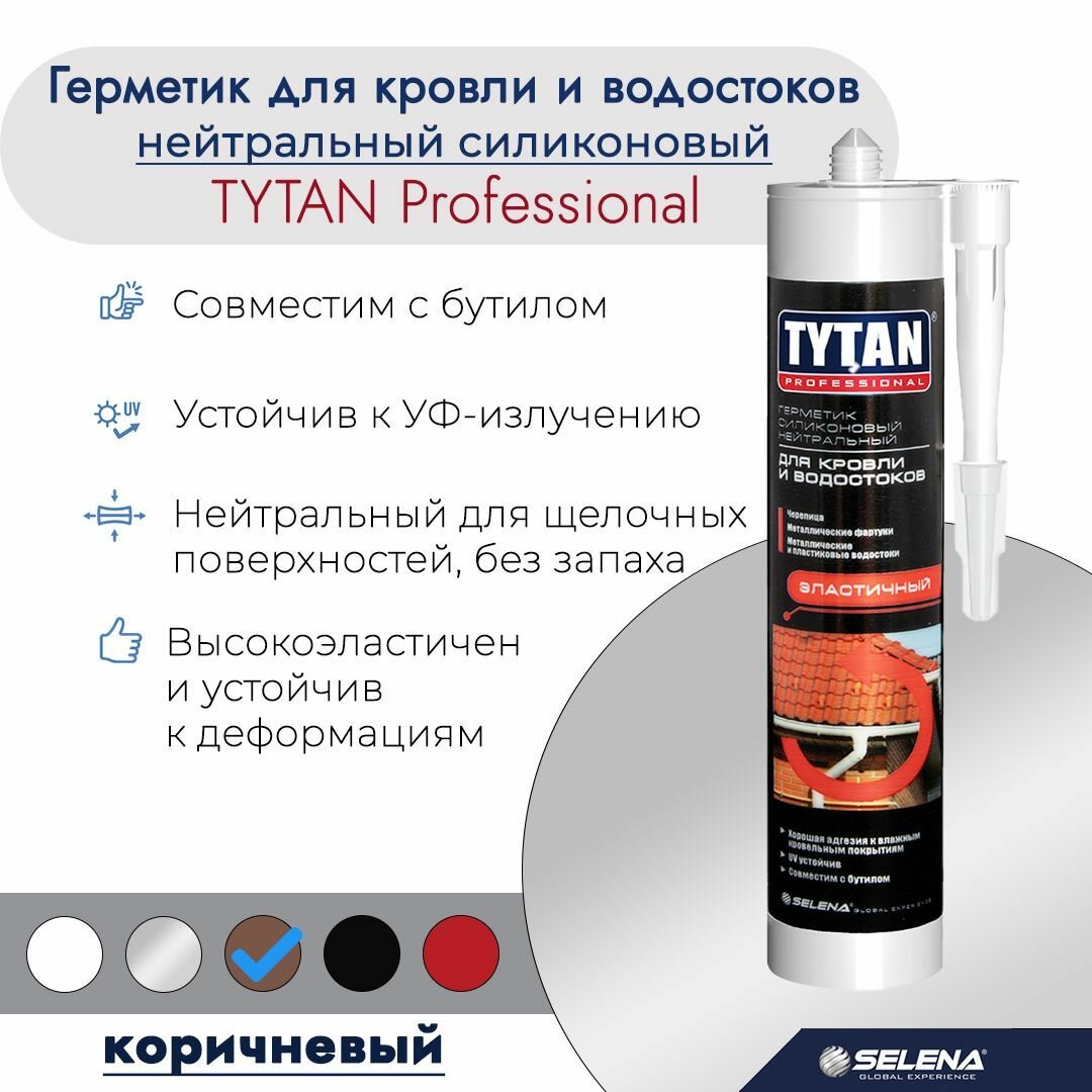 Герметик силиконовый для кровли и водостоков Tytan Professional, нейтральный, 310 мл, коричневый