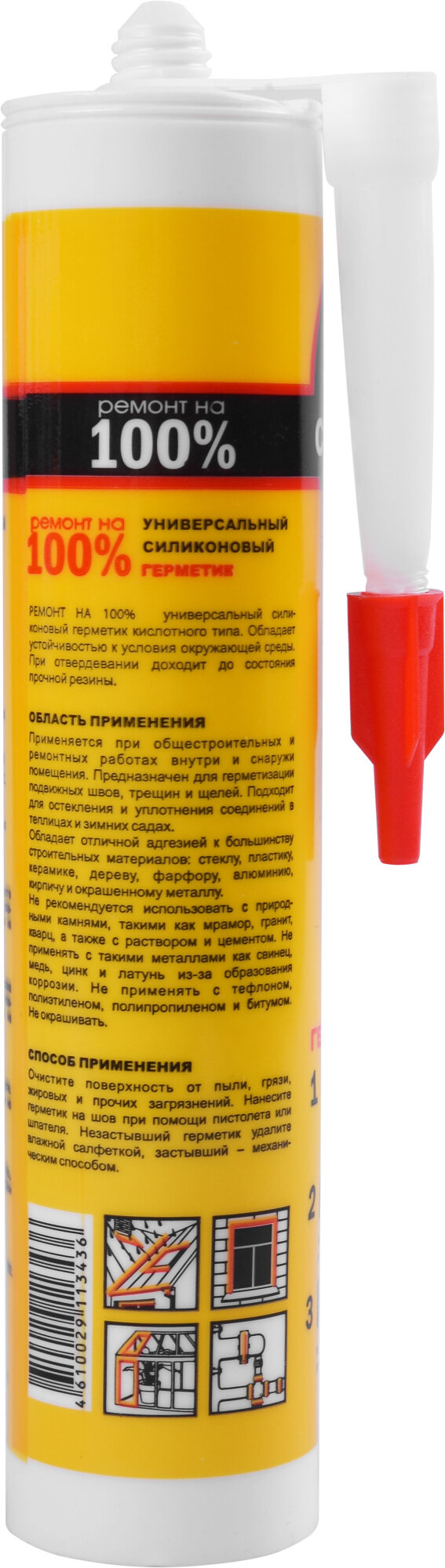 Ремонт на 100 Ремонт на 100 Герметик силиконовый универсальный белый RUWDE26062 RUWDE26062/H1618