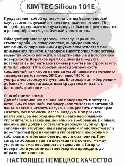 | Подробная комплектация | Герметик силиконовый универсальный 101Е «KIM TEC», серый, 310 мл 1 шт |