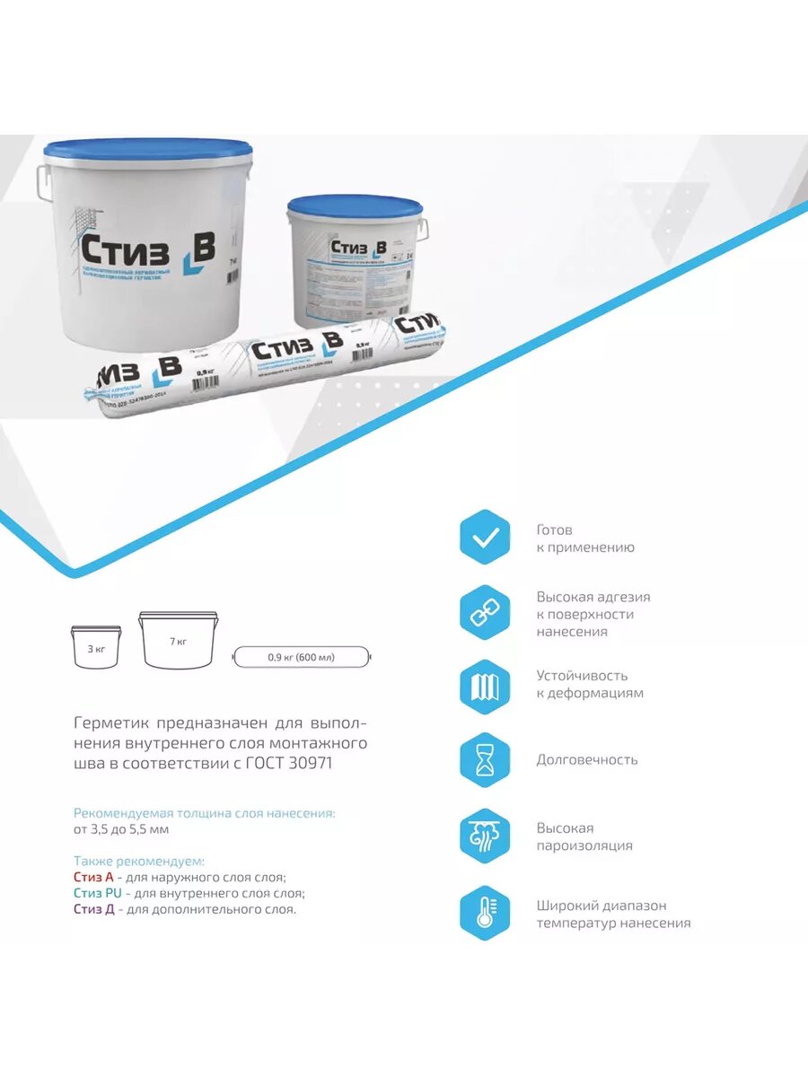 Герметик Стиз В для внутреннего монтажного шва 3 кг интересное: