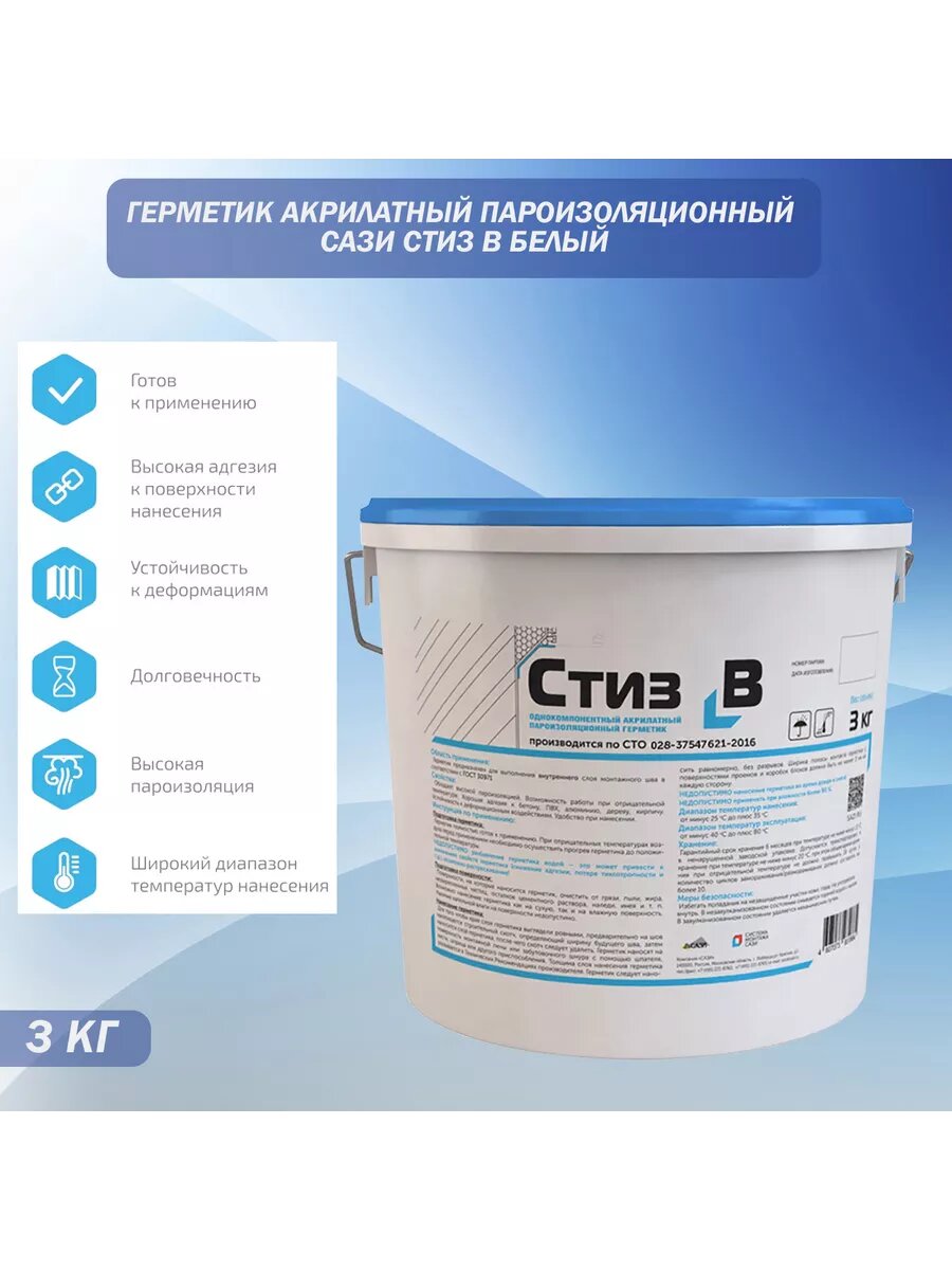 Герметик акрилатный паропроницаемый Сази Стиз В белый 3 кг.