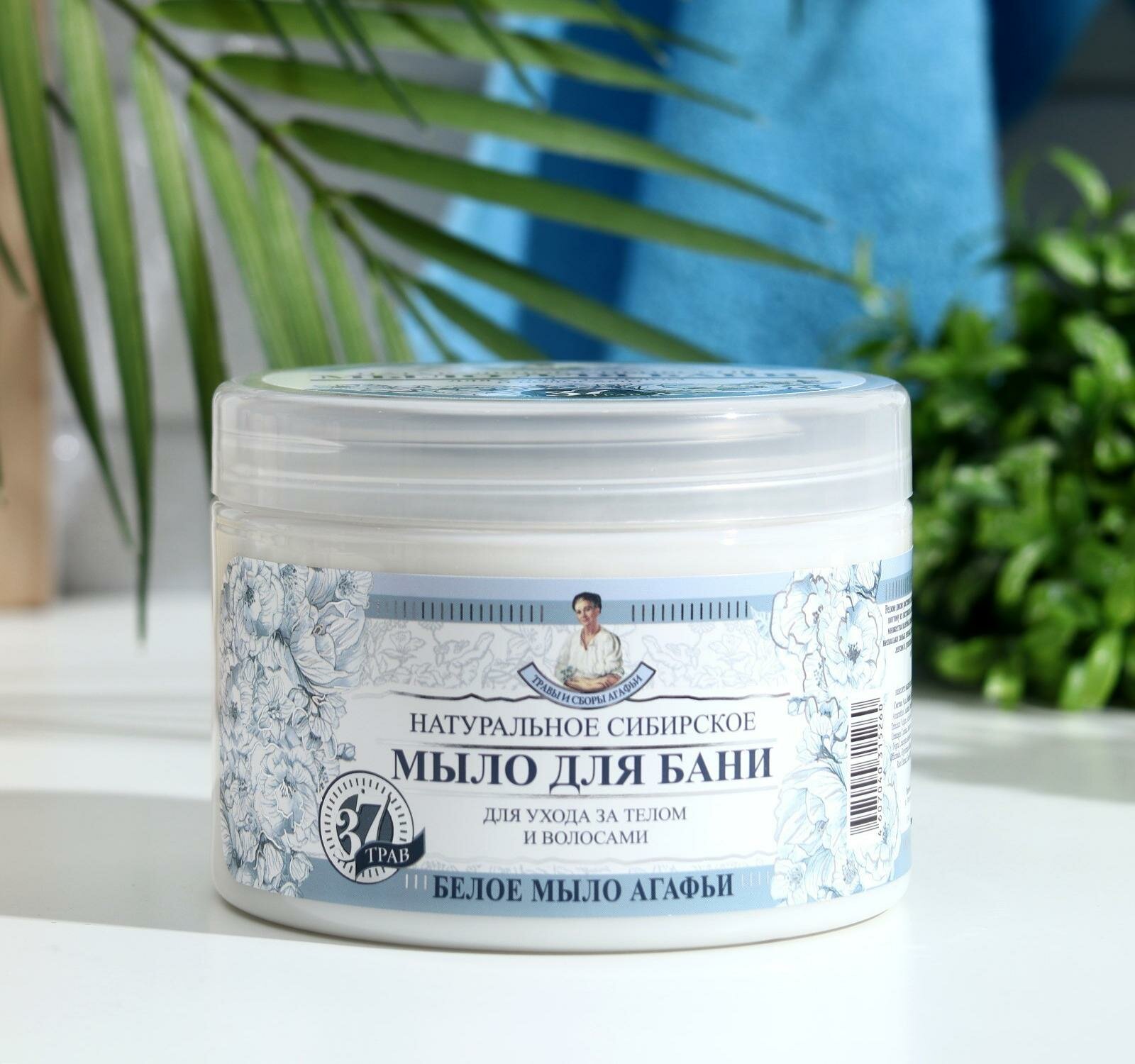 Белое мыло для бани Рецепты бабушки Агафьи "Травы и сборы" густое для волос и тела 500 мл