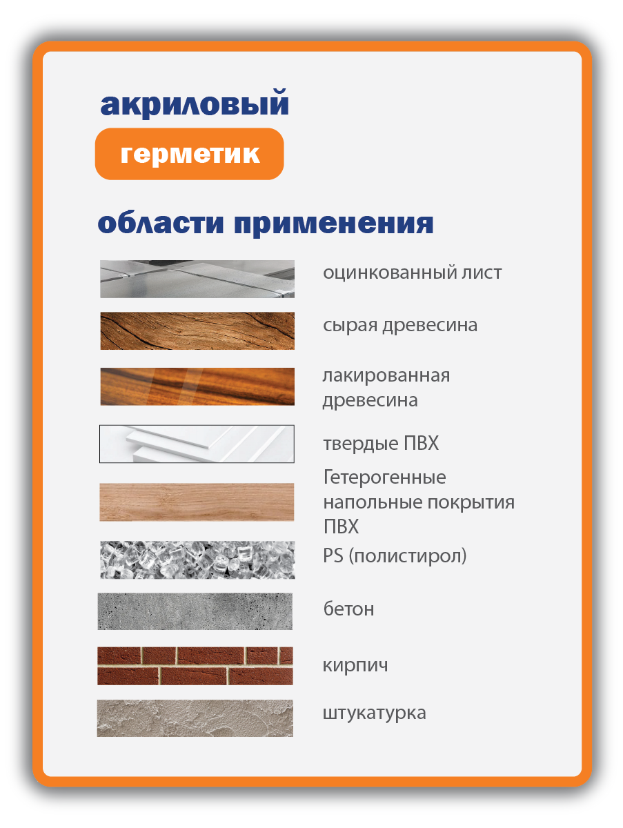 | Основа | акрил / каучук / полимер / силикат / силикон |