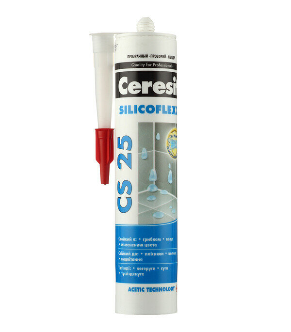 Затирка-герметик силиконовая Церезит CS 25 прозрачная 280 мл / для ванной, для кухни