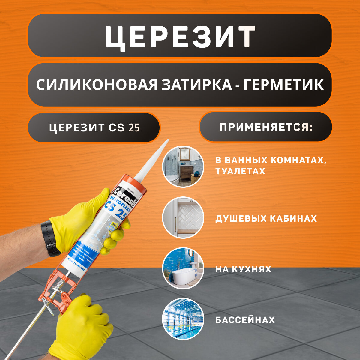 Затирка-герметик силиконовая Церезит CS 25 №41 натура 280 мл / для ванной, для кухни