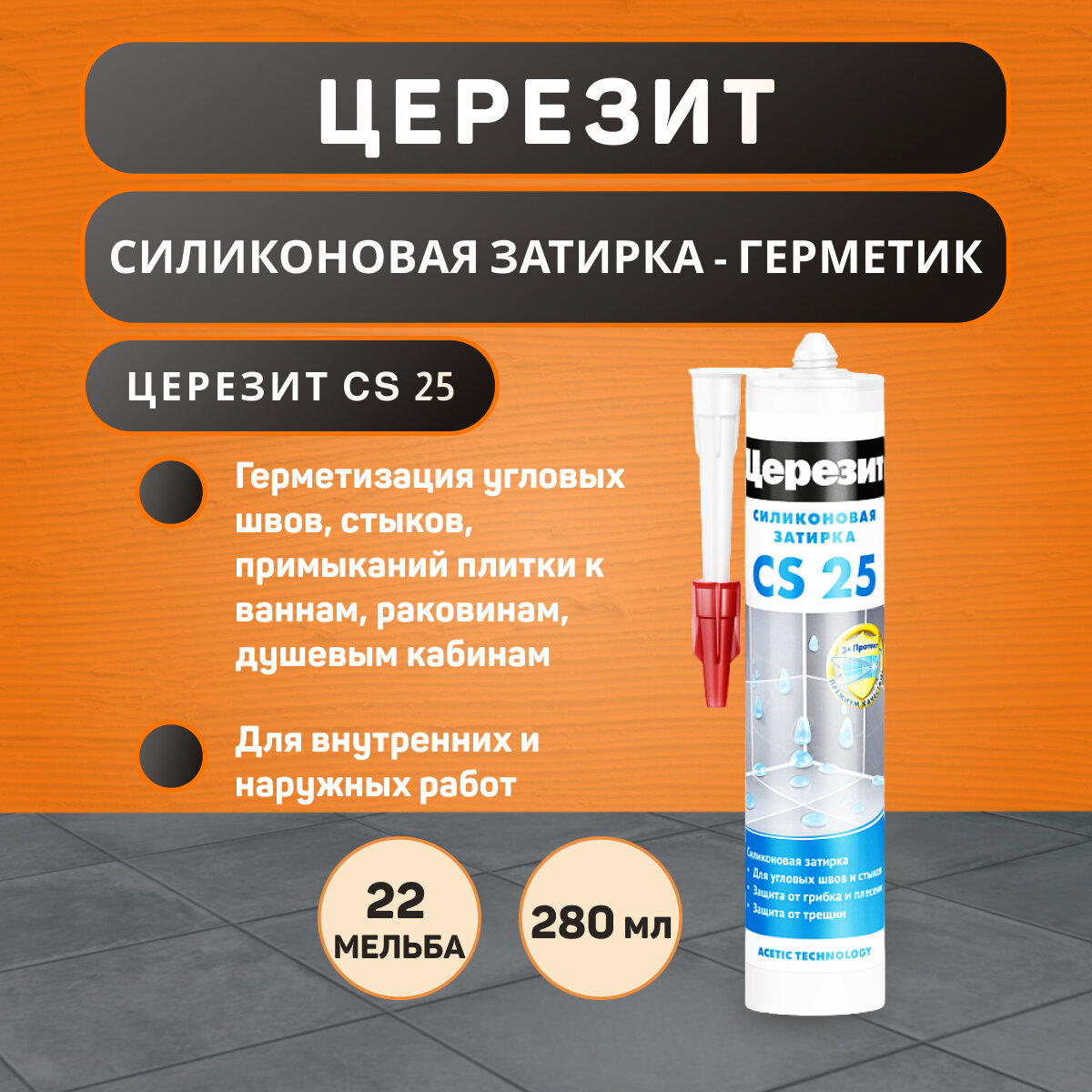 Затирка-герметик силиконовая Церезит CS 25 №22 мельба 280 мл / для ванной, для кухни