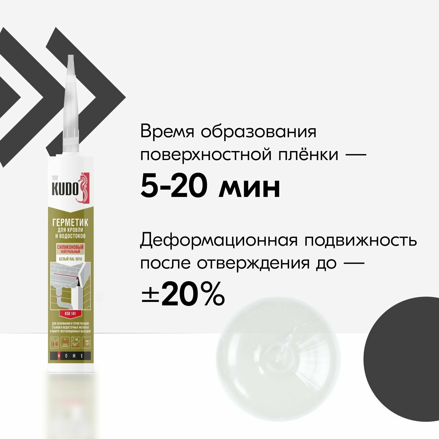 Герметик силиконовый KUDO для кровли и водостоков KSK-141, белый, 280 мл
