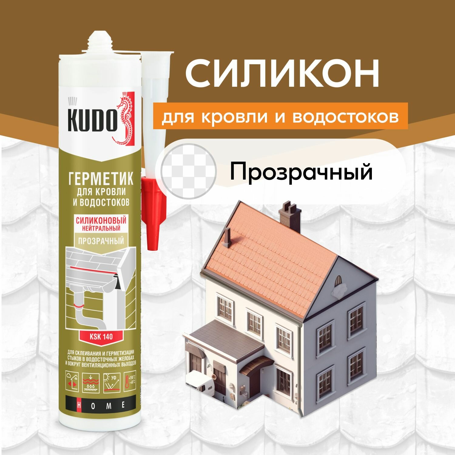 Герметик силиконовый для кровли и водостоков Kudo KSK 140, 280 мл, прозрачный