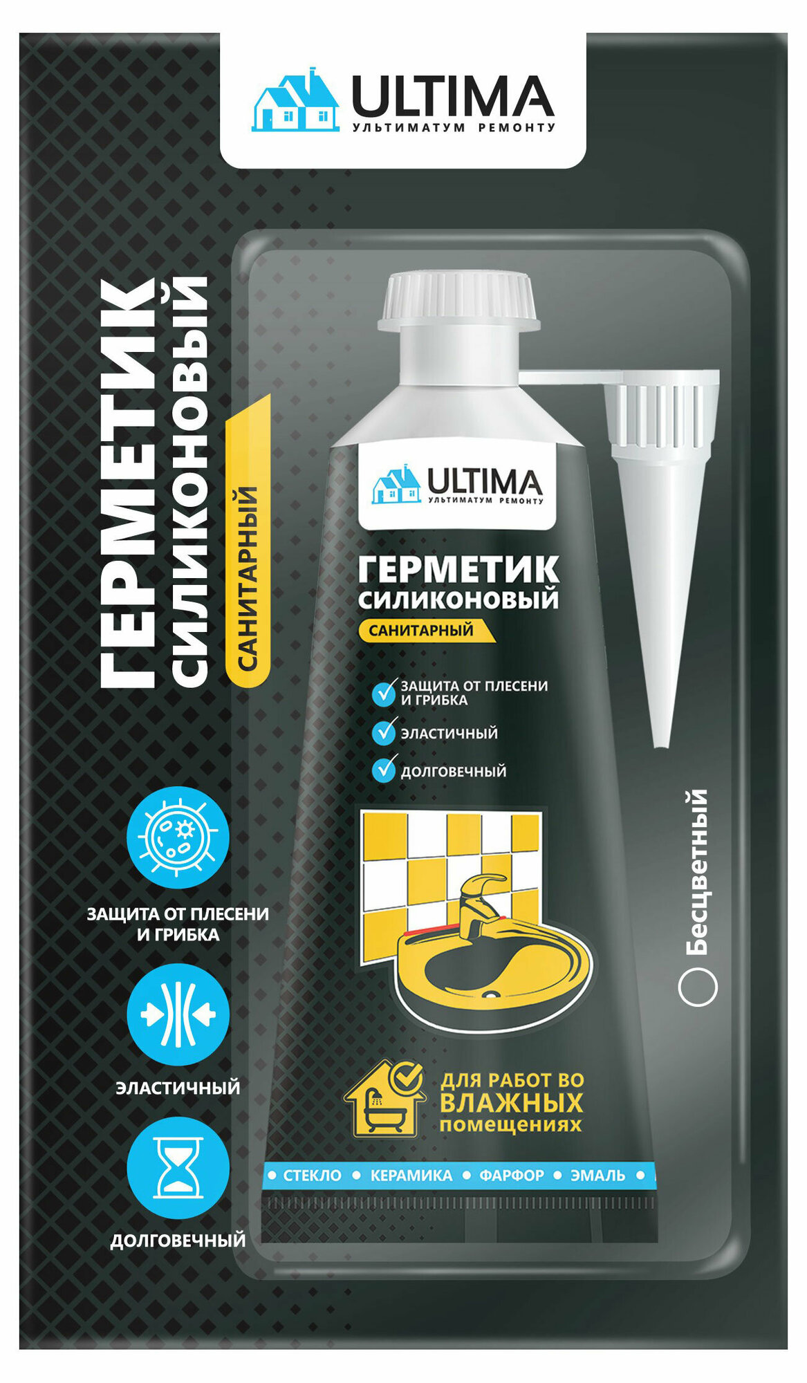 Герметик силиконовый санитарный Ultima бесцветный, 80мл